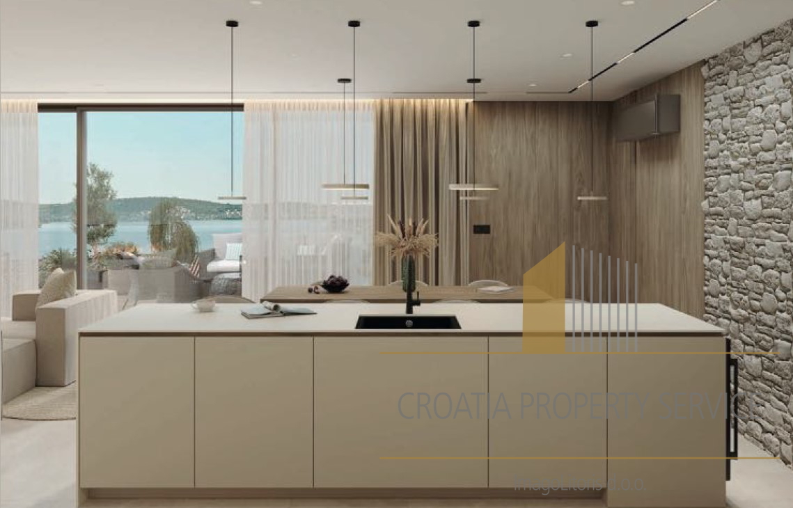 Moderne Designvilla im Zentrum von Rogoznica, nur 100 m vom türkisfarbenen Meer und dem Strand entfernt.