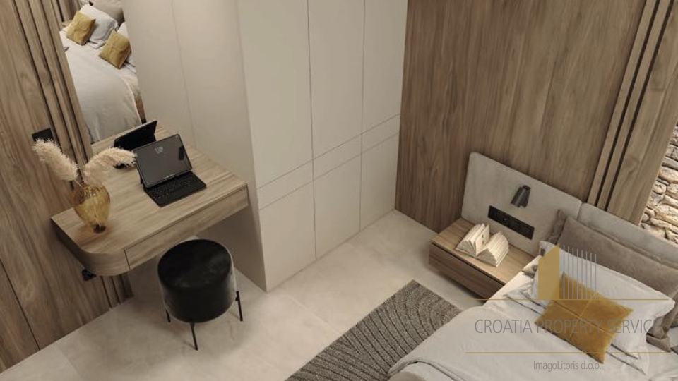 Sie ist von zahlreichen Cafés, Restaurants und Geschäften umgeben und bietet eine perfekt ausgewogene Kombination aus Komfort und Luxus. Eine der besten kroatischen Marinas - Marina Frapa, ist nur 15 Gehminuten über die Promenade entfernt.