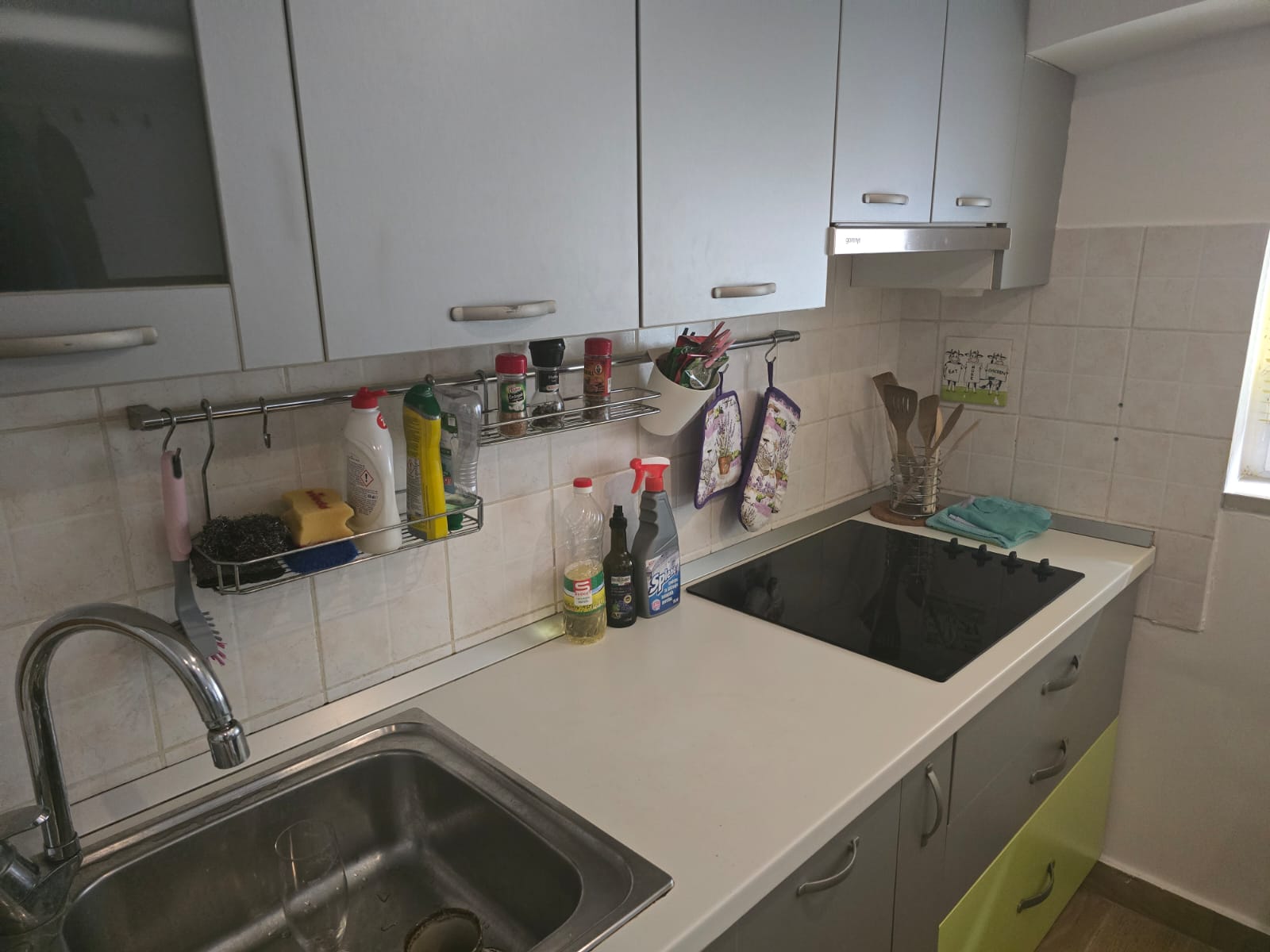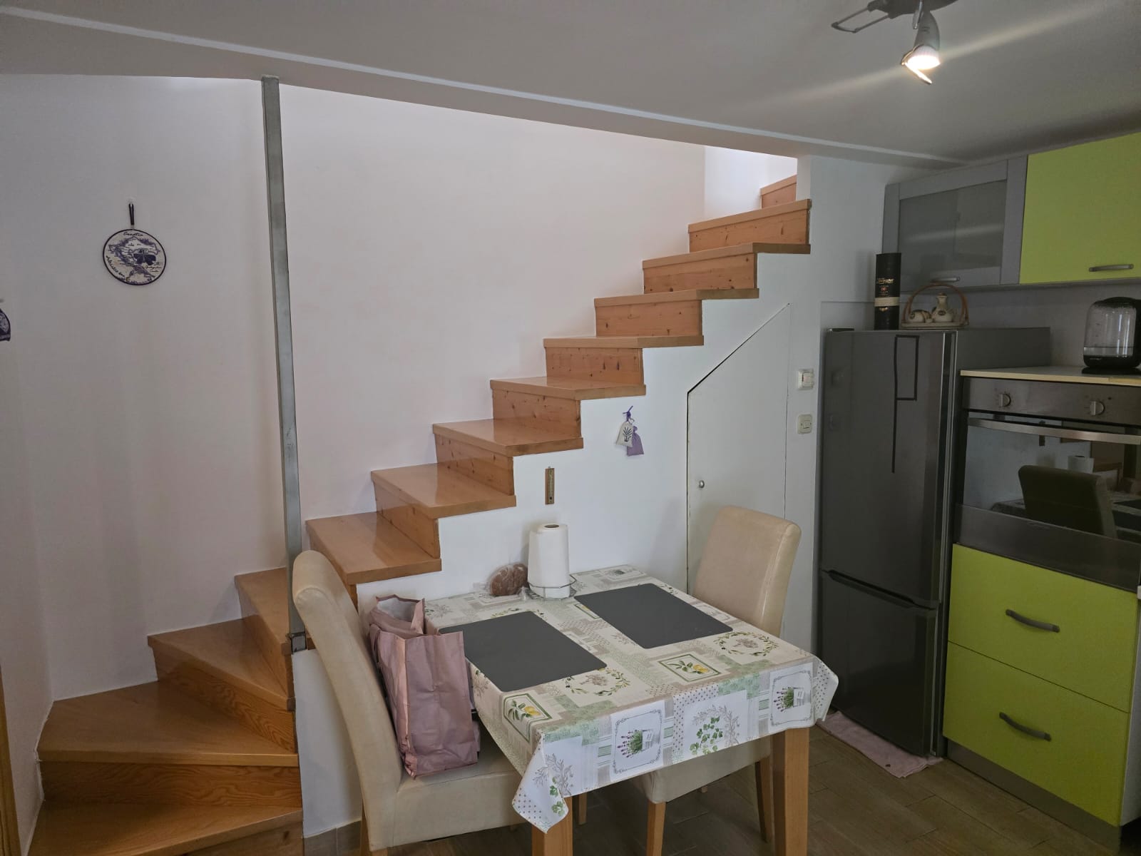 Das Haus ist in drei Etagen unterteilt: Im Erdgeschoss befinden sich eine funktionale Küche und ein Badezimmer, im ersten Stock ein gemütliches Wohnzimmer mit Zugang zur Außentreppe und im Dachgeschoss ein gemütliches Schlafzimmer. Jede Etage umfasst ca. 23 m2, was eine maximale Raumnutzung ermöglicht.
