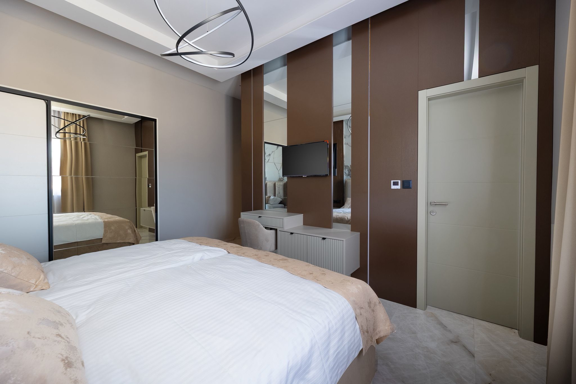 Die Villa besteht aus sechs eleganten Schlafzimmern und sechs modernen Badezimmern, sowie einer großzügigen Küche, einem Esszimmer und einem Wohnzimmer. Zwei Schlafzimmer mit Badezimmern sind separat und ideal als Personal- oder Gästezimmer nutzbar.