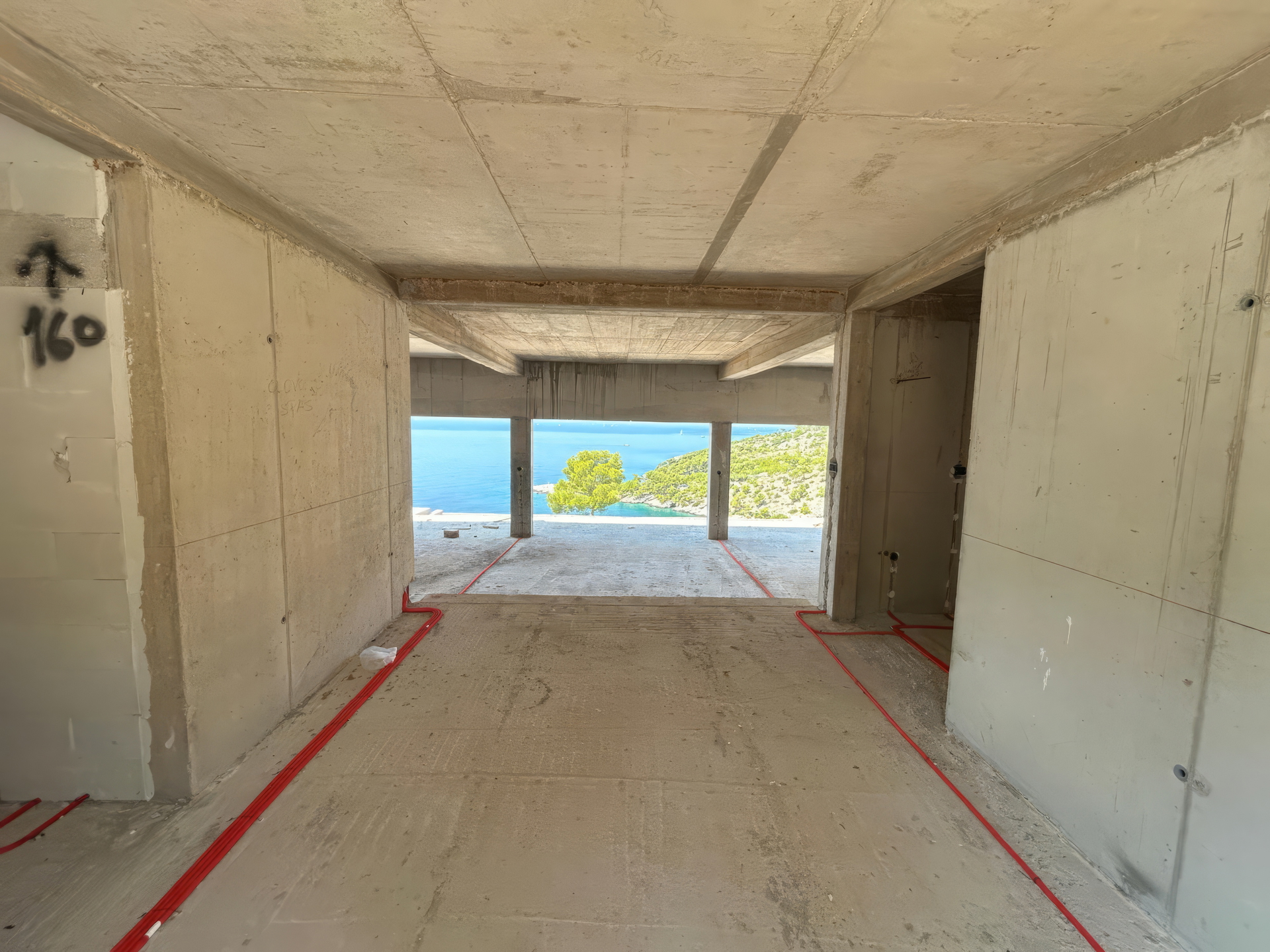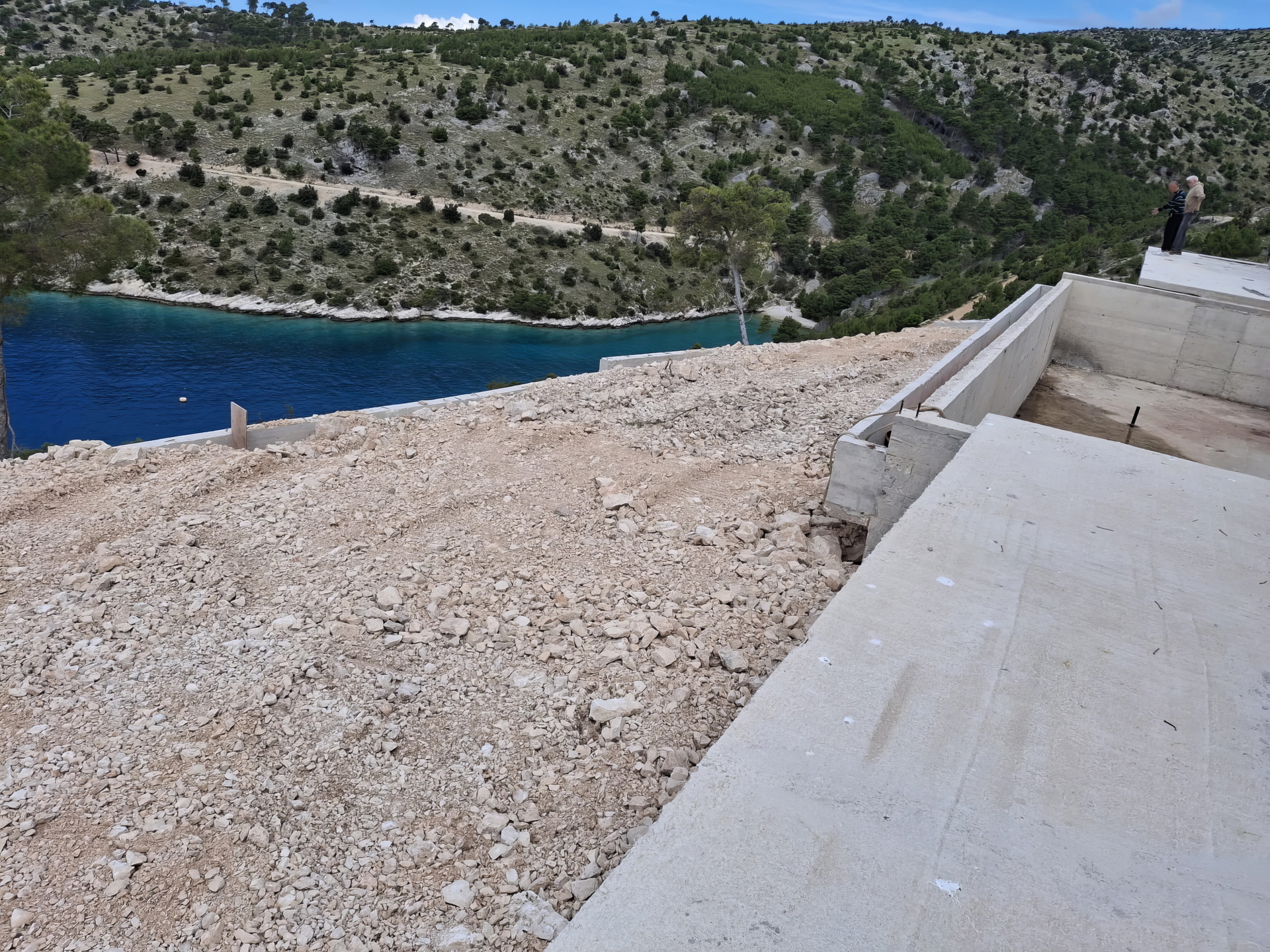 Auf einer der schönsten Inseln der Adria – Brač – wird eine luxuriöse Villa im Bau verkauft, gelegen in einer wunderschönen Bucht, erste Reihe zum Meer.