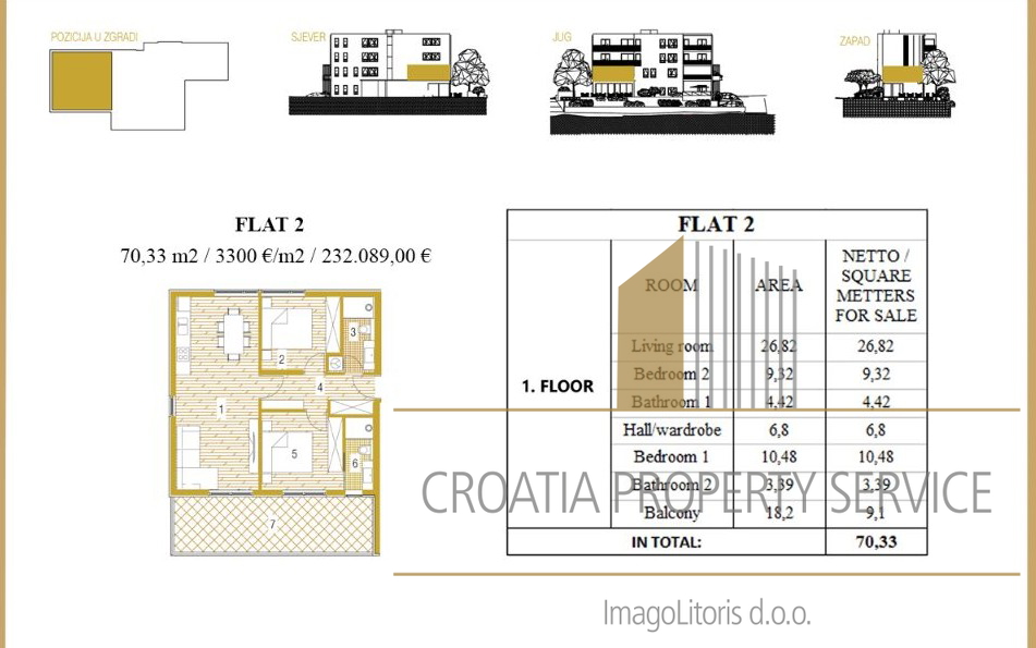 Das Gebäude wird sich unterhalb der Zadarska-Straße befinden und aus einem Untergeschoss mit Garagenstellplätzen und Abstellräumen sowie einem Aufzug und vier Obergeschossen bestehen.
