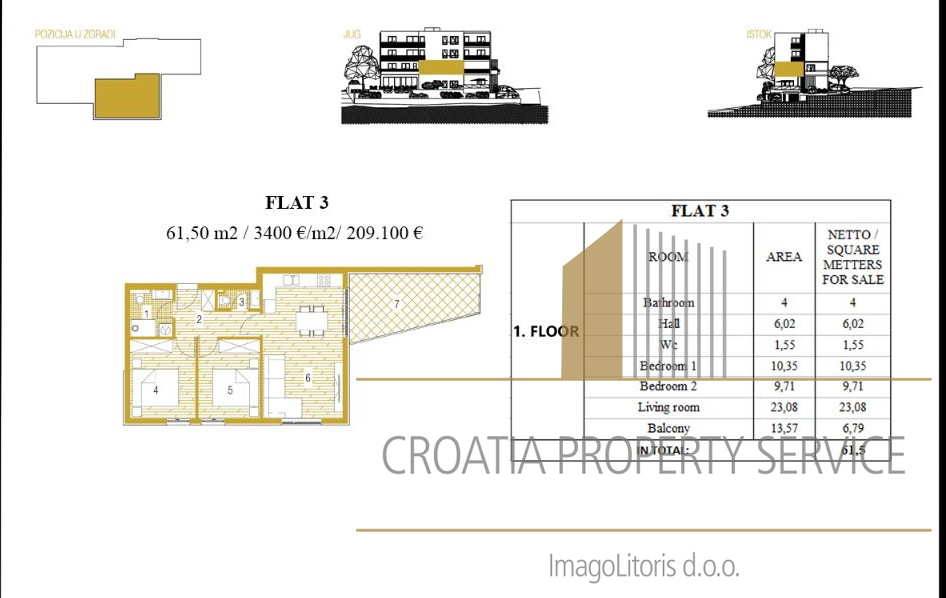 Wohnung 3 – 1. STOCK: 61,50 m²; 195.534,00 €
