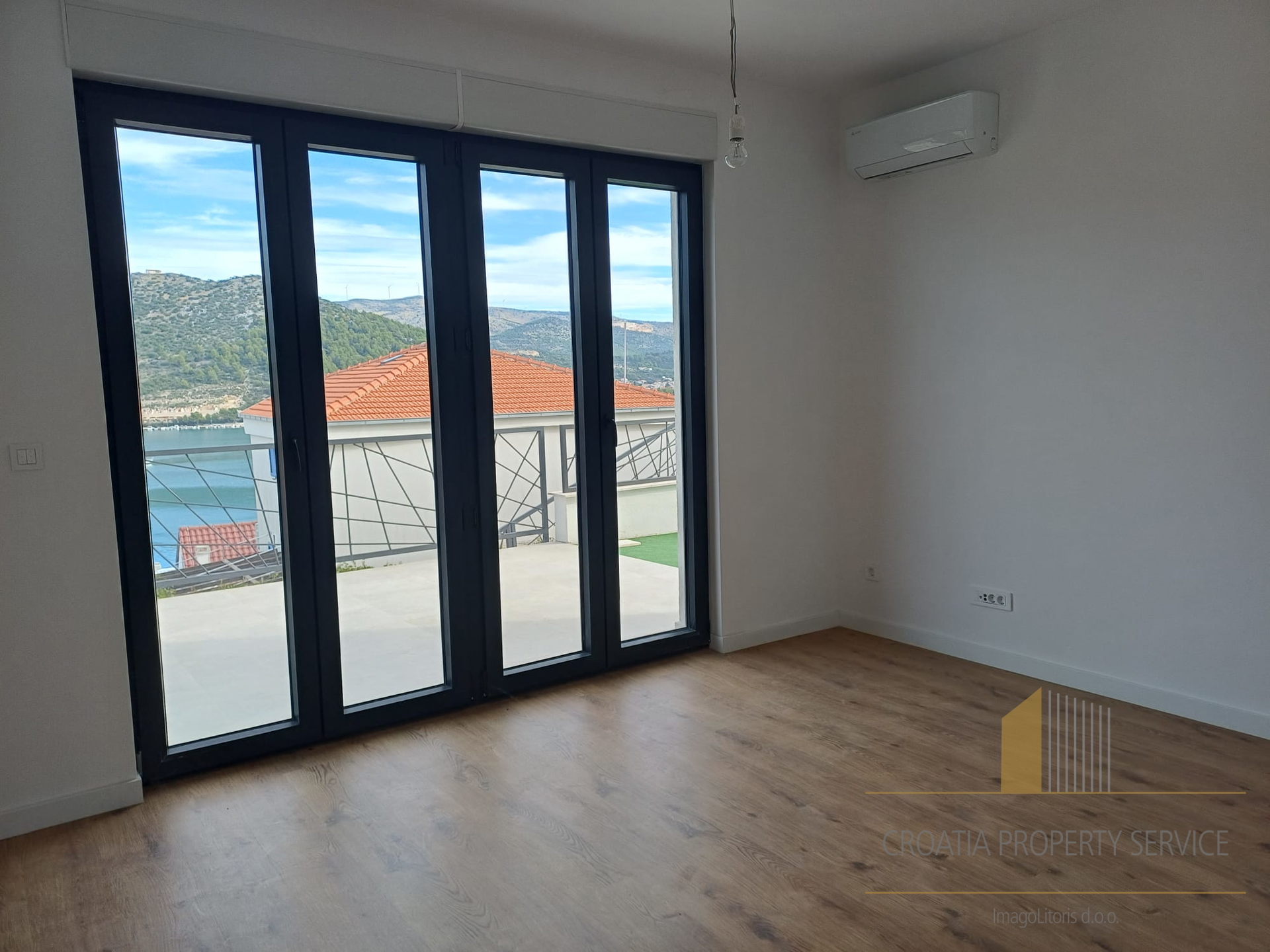 Zum Verkauf steht eine luxuriöse Wohnung in einem Neubau, gelegen an einem ausgezeichneten Standort in Marina, unweit von Trogir.