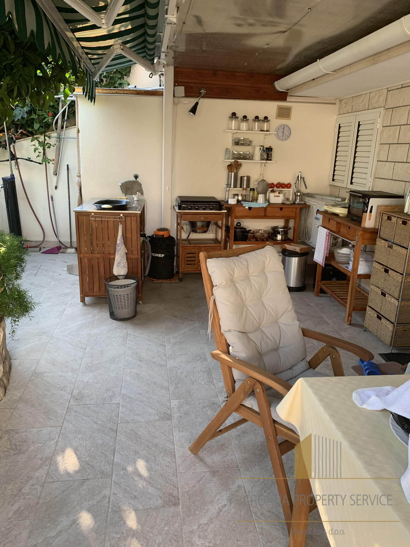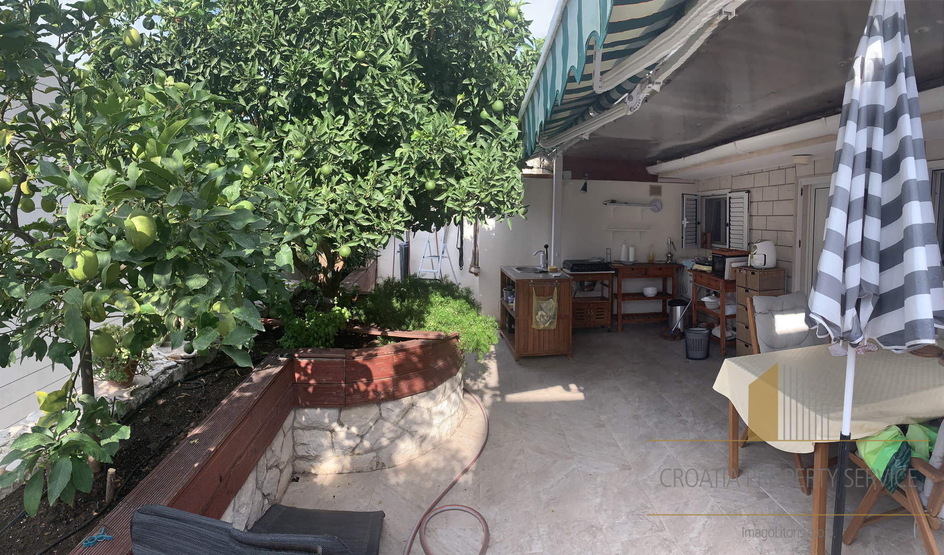 An einem außergewöhnlichen Standort, nur 30 Meter vom Meer entfernt auf der Insel Čiovo, befindet sich dieses wunderschöne Haus, das Komfort, Funktionalität und eine ruhige mediterrane Atmosphäre vereint.