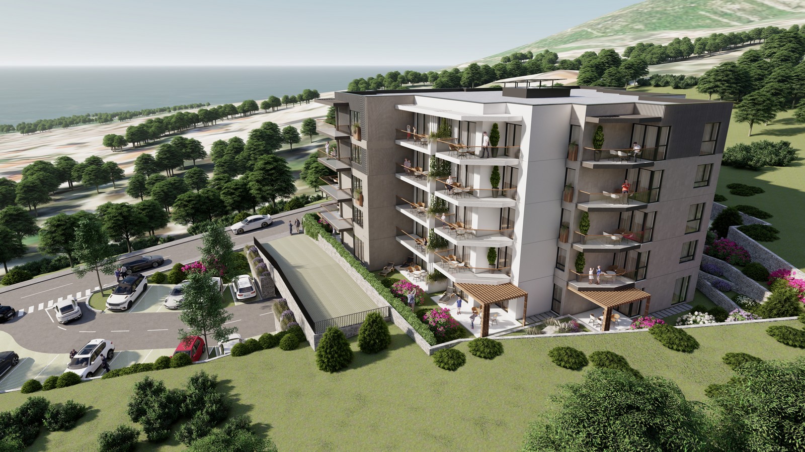 In einem modern gestalteten Wohngebäude mit Aufzug, nur 720 Meter vom Meer entfernt, wird eine Zweizimmerwohnung mit einer Fläche von 65 m2 angeboten.