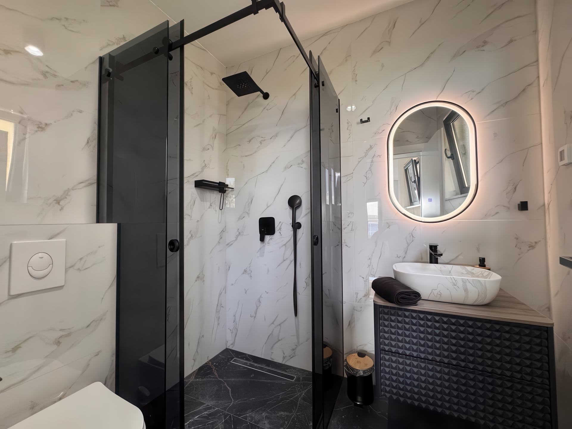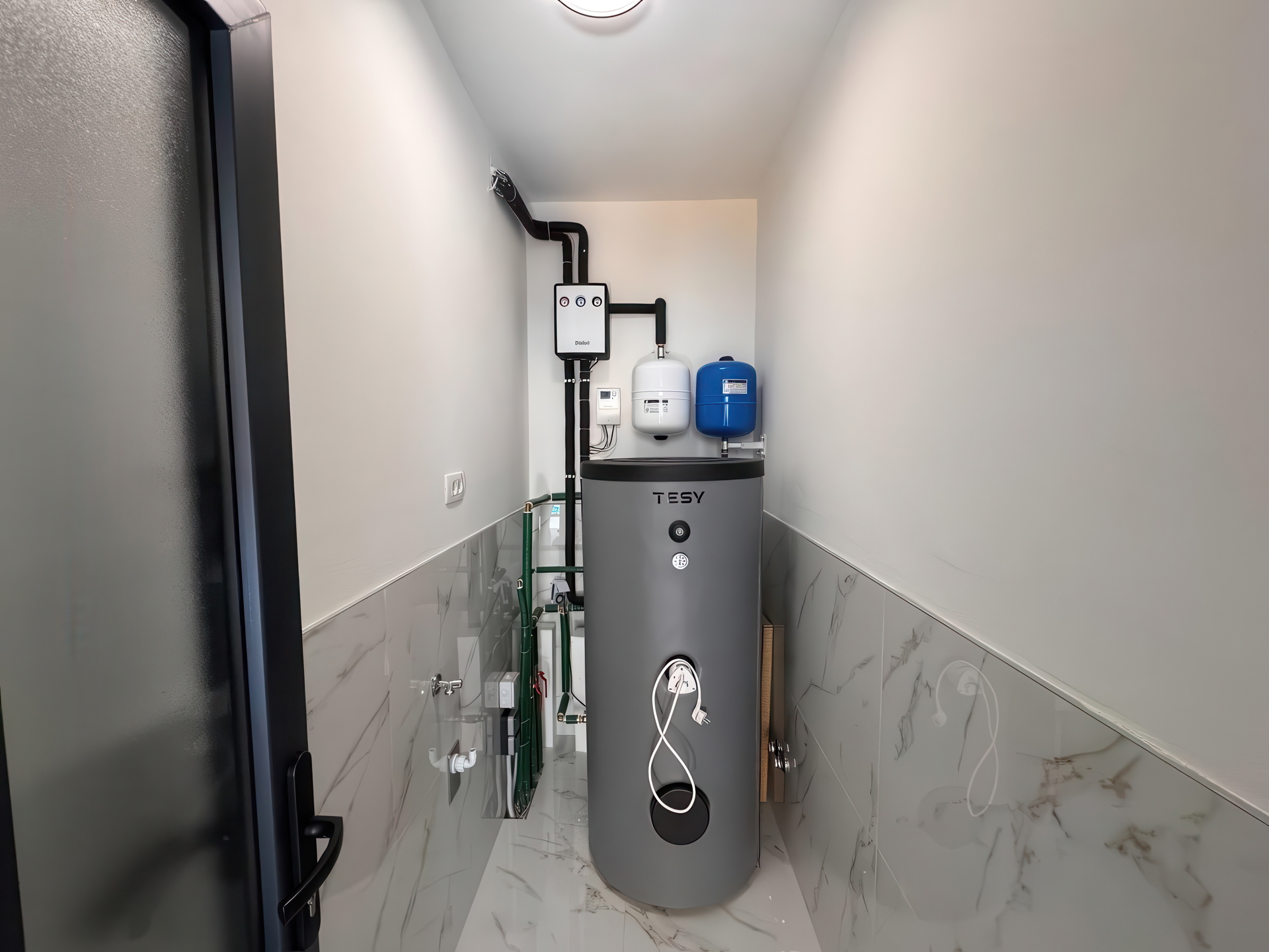 Die Villa ist mit fünf Klimaanlagen, Fußbodenheizung in den Badezimmern sowie Solarpaneelen ausgestattet, was das ganze Jahr über ein hohes Maß an Komfort und Energieeffizienz gewährleistet.