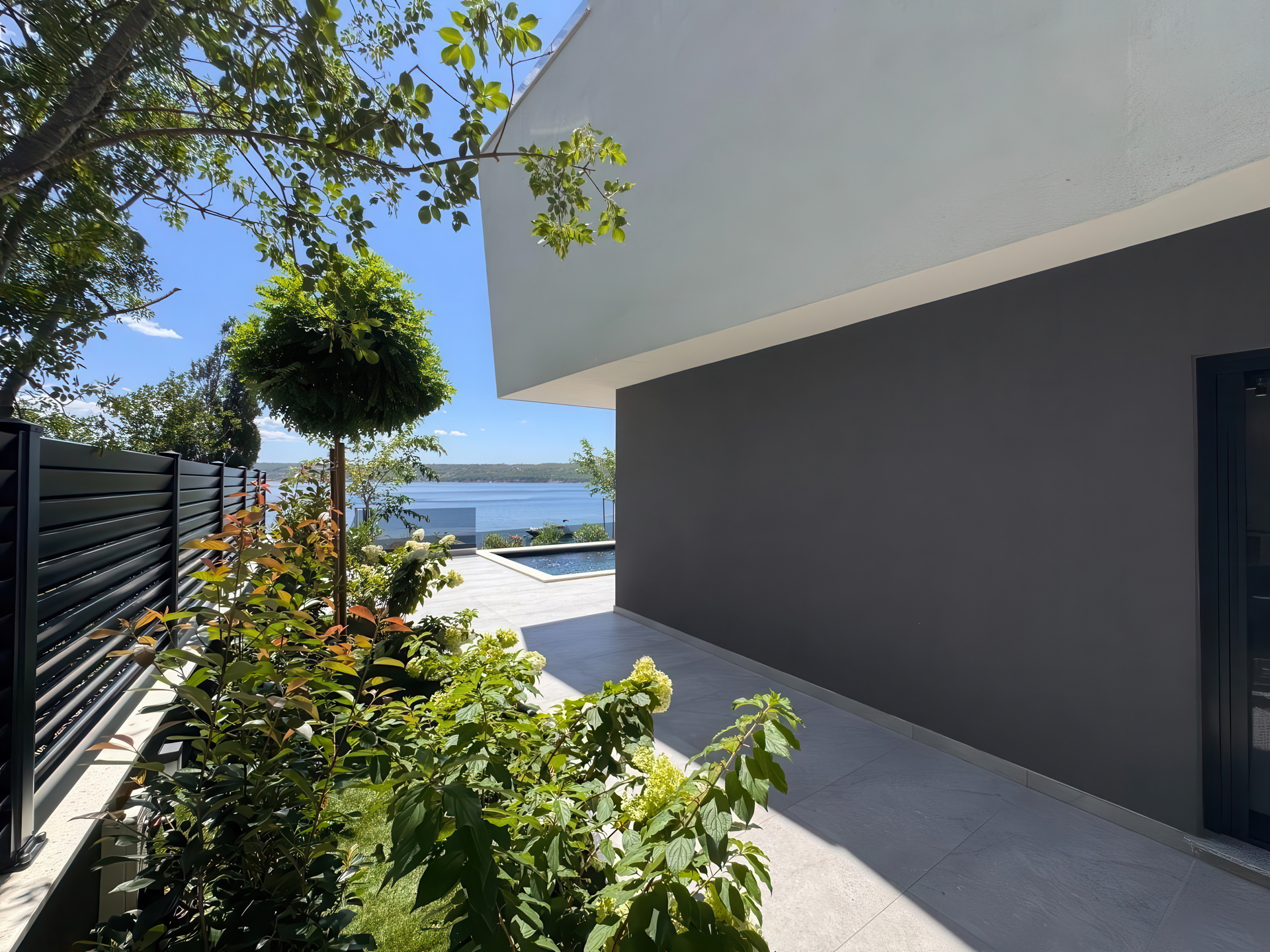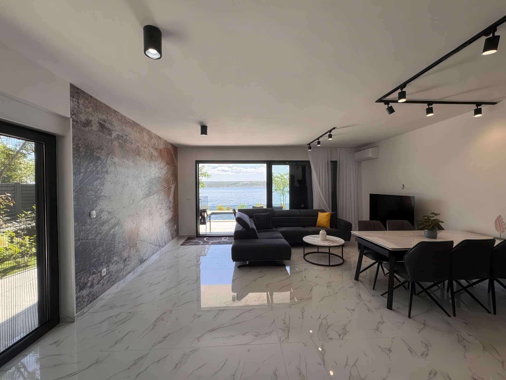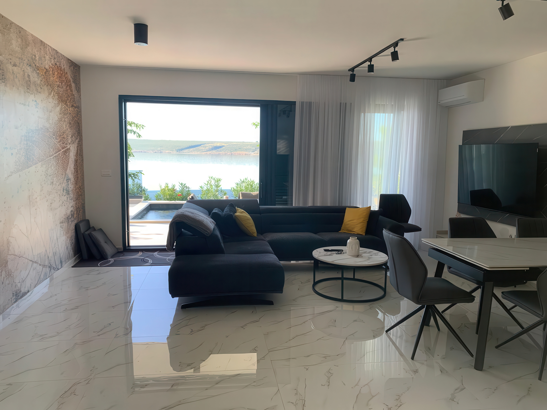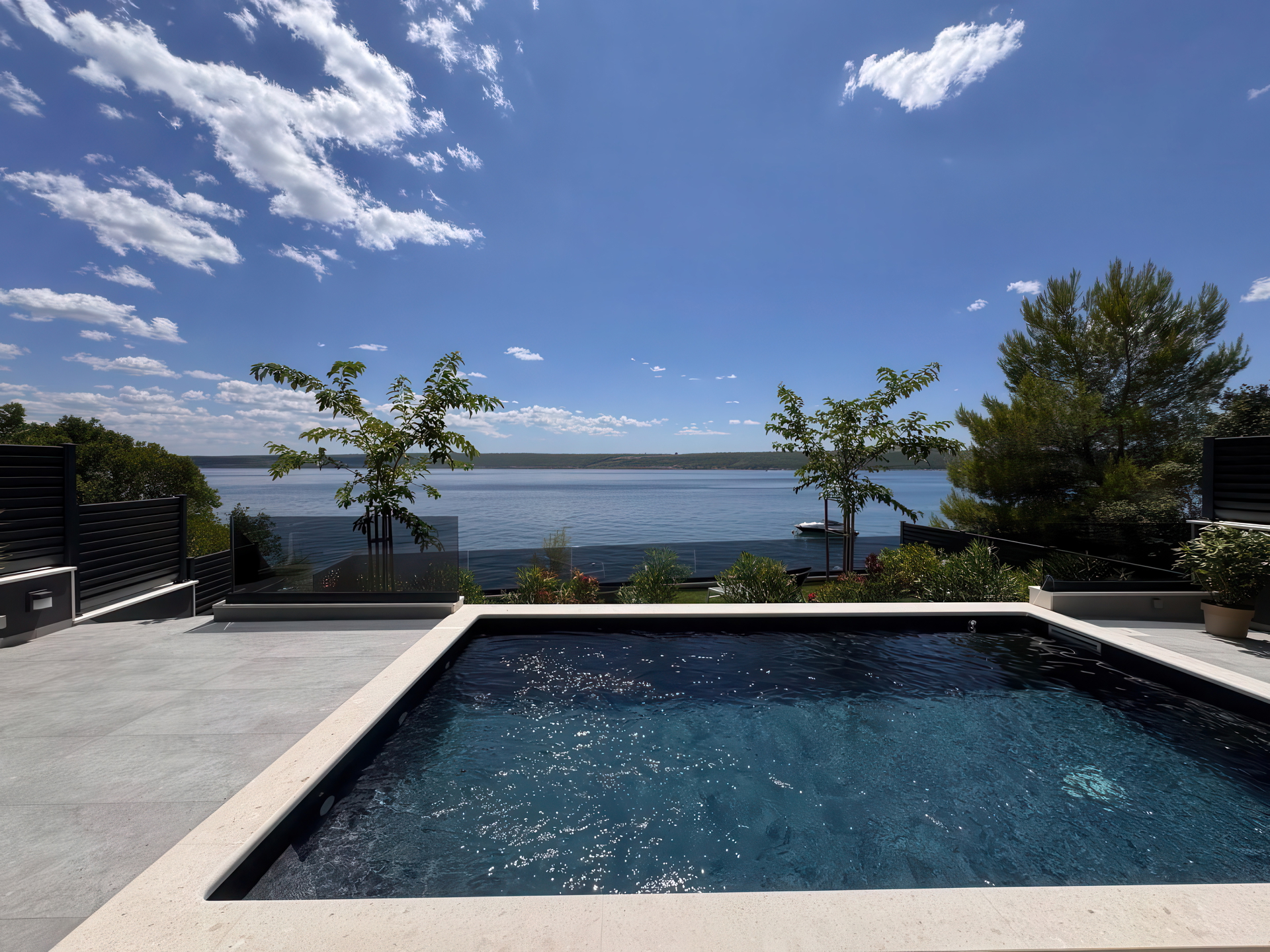 Zum Verkauf steht eine moderne Villa in Posedarje, gelegen in erster Meereslinie, in einer ruhigen Bucht mit direktem Zugang zum Strand. Die Lage garantiert vollständige Privatsphäre und einen diskreten Zugang, wodurch ein Gefühl eines exklusiven Rückzugsortes fernab vom Alltag entsteht, und dennoch sind alle wichtigen Einrichtungen in unmittelbarer Nähe.