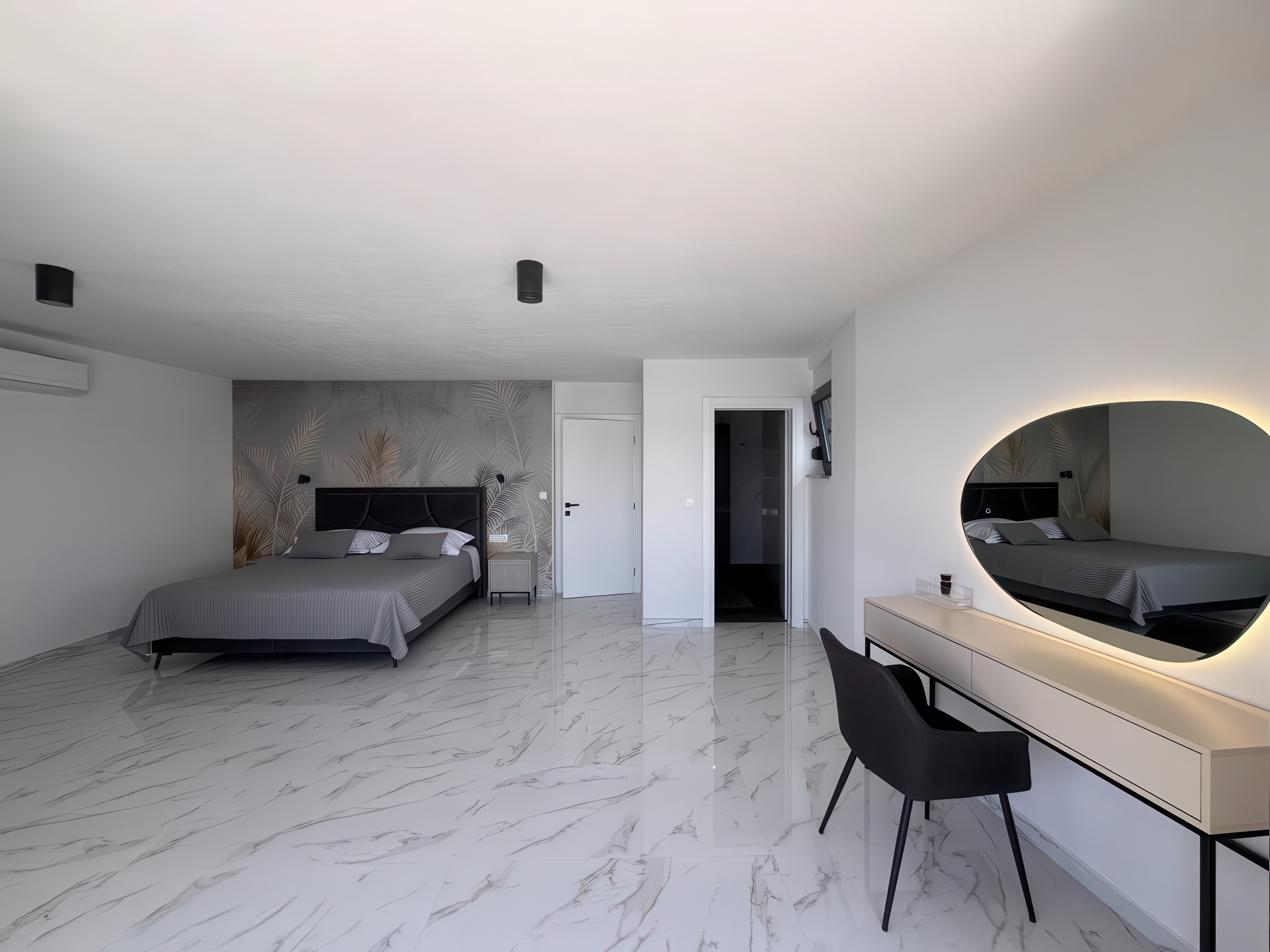 Im zweiten Obergeschoss befindet sich das beeindruckende Hauptschlafzimmer mit eigenem Badezimmer und einer großzügigen Terrasse, perfekt zum vollständigen Entspannen mit freiem Ausblick.