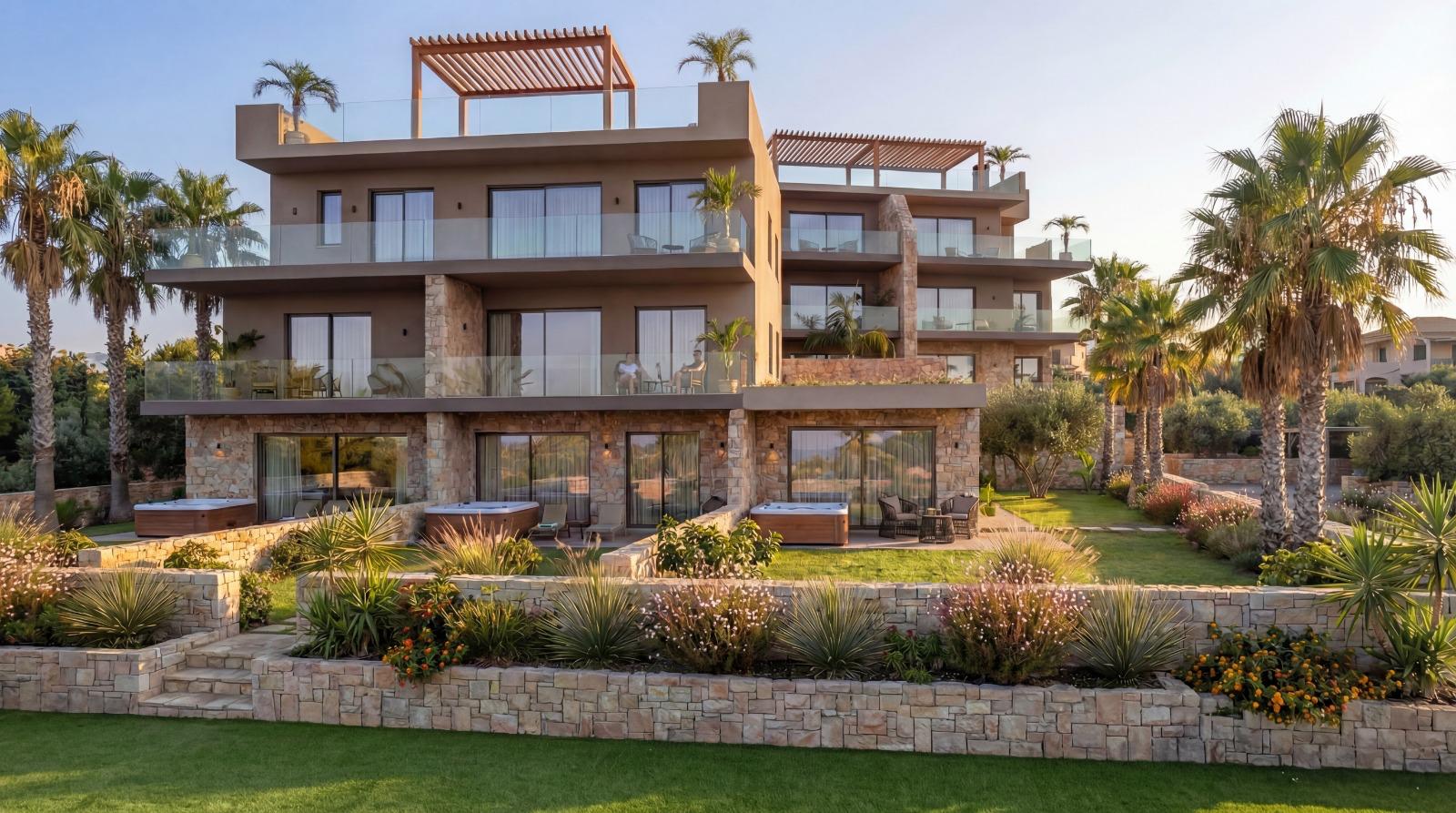 Das Projekt erstreckt sich über 2.500 m2 und umfasst drei moderne Wohngebäude mit insgesamt 17 exklusiven Wohnungen, die in erster und zweiter Reihe zum Meer liegen.