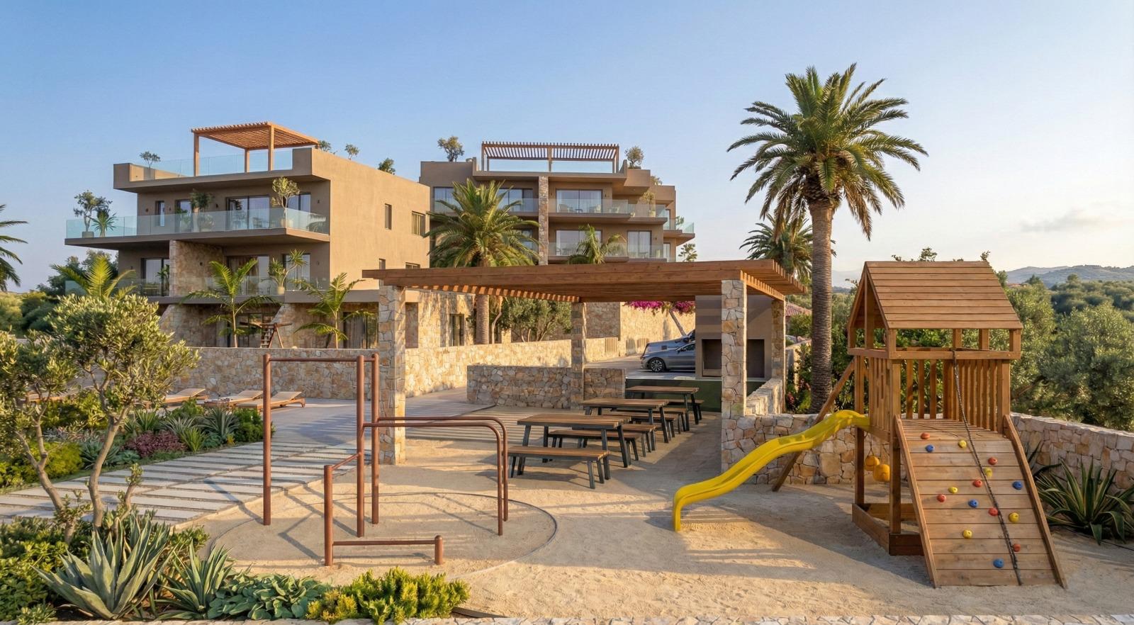 Der Komplex ist als geschlossene Einheit konzipiert, die zusätzlichen Wert und Wohnkomfort bietet. Den Bewohnern stehen gemeinschaftliche Einrichtungen zur Verfügung, die speziell für das Genießen im Freien ausgestattet sind: Pool, Sonnenterrasse, Grillzone, Fitnesscenter.