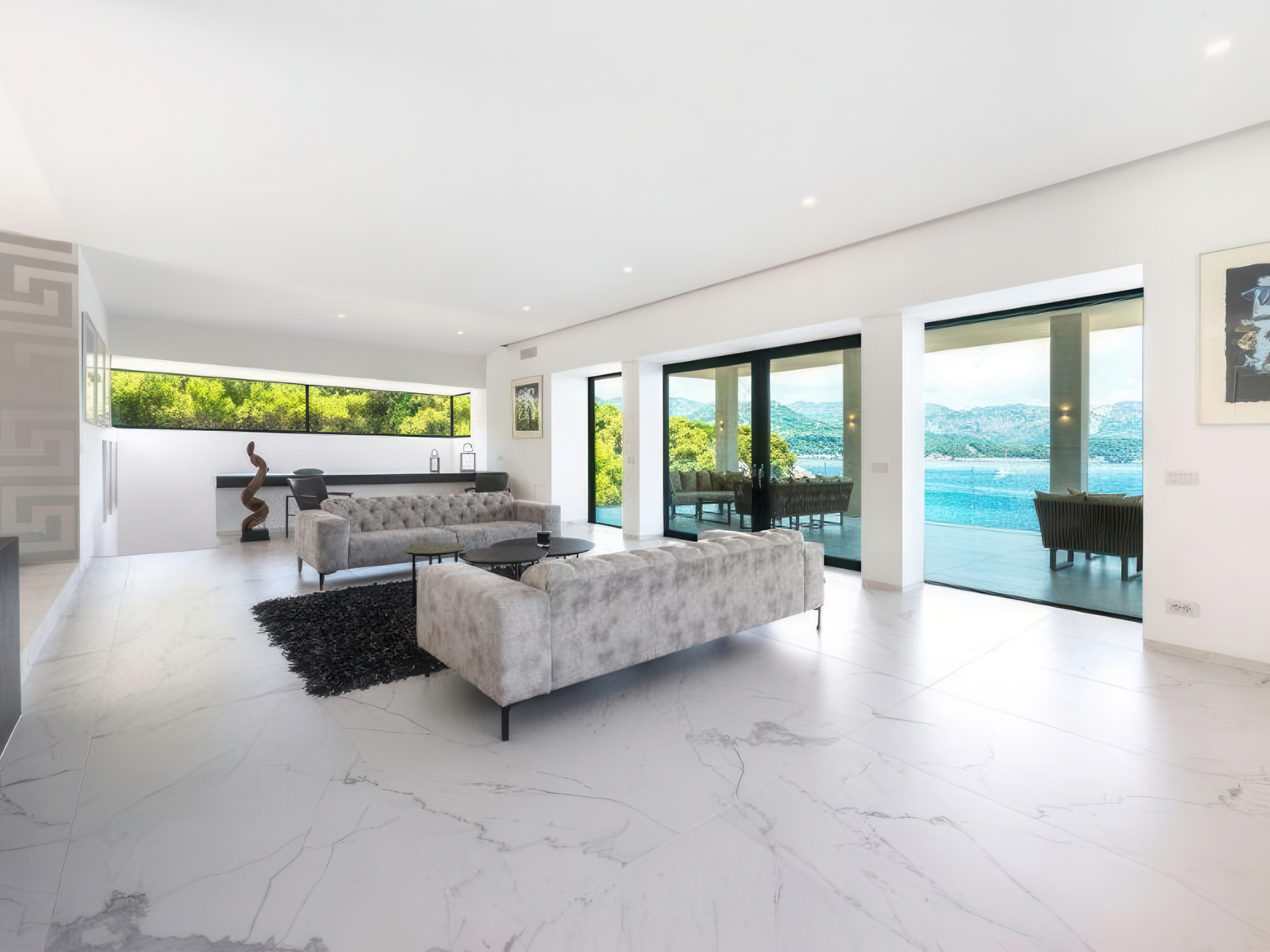 Marble floors and the natural light provided by panoramic glazing make the villa even larger and more spacious.
