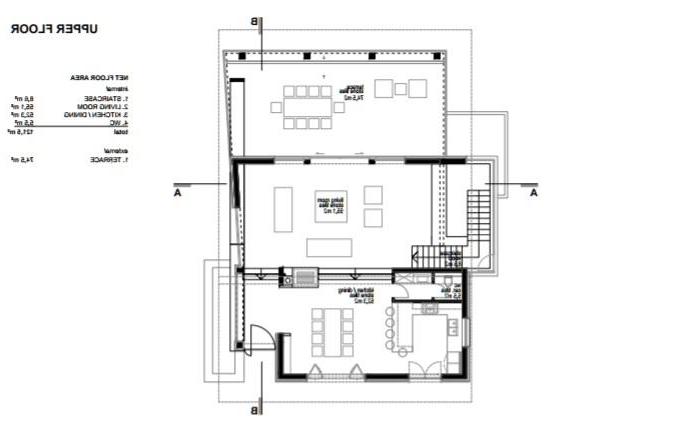 The villa's area is 309 m2 distributed over the ground floor and the first floor. The plot covers 1400 m2.