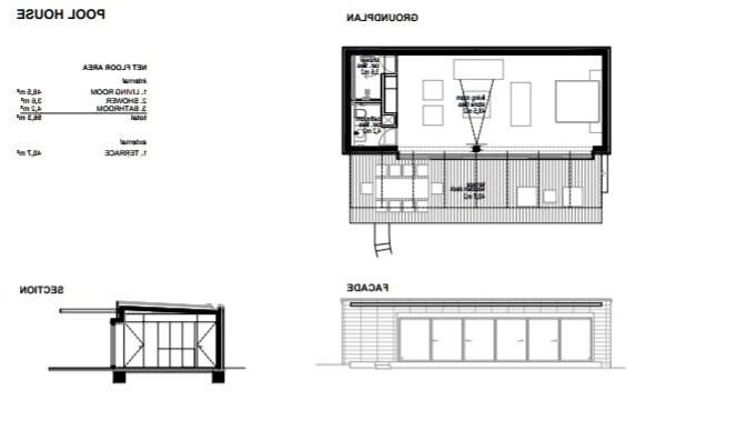 Next to the main house, there is also a pool house of 56 m2 with an additional smaller terrace.