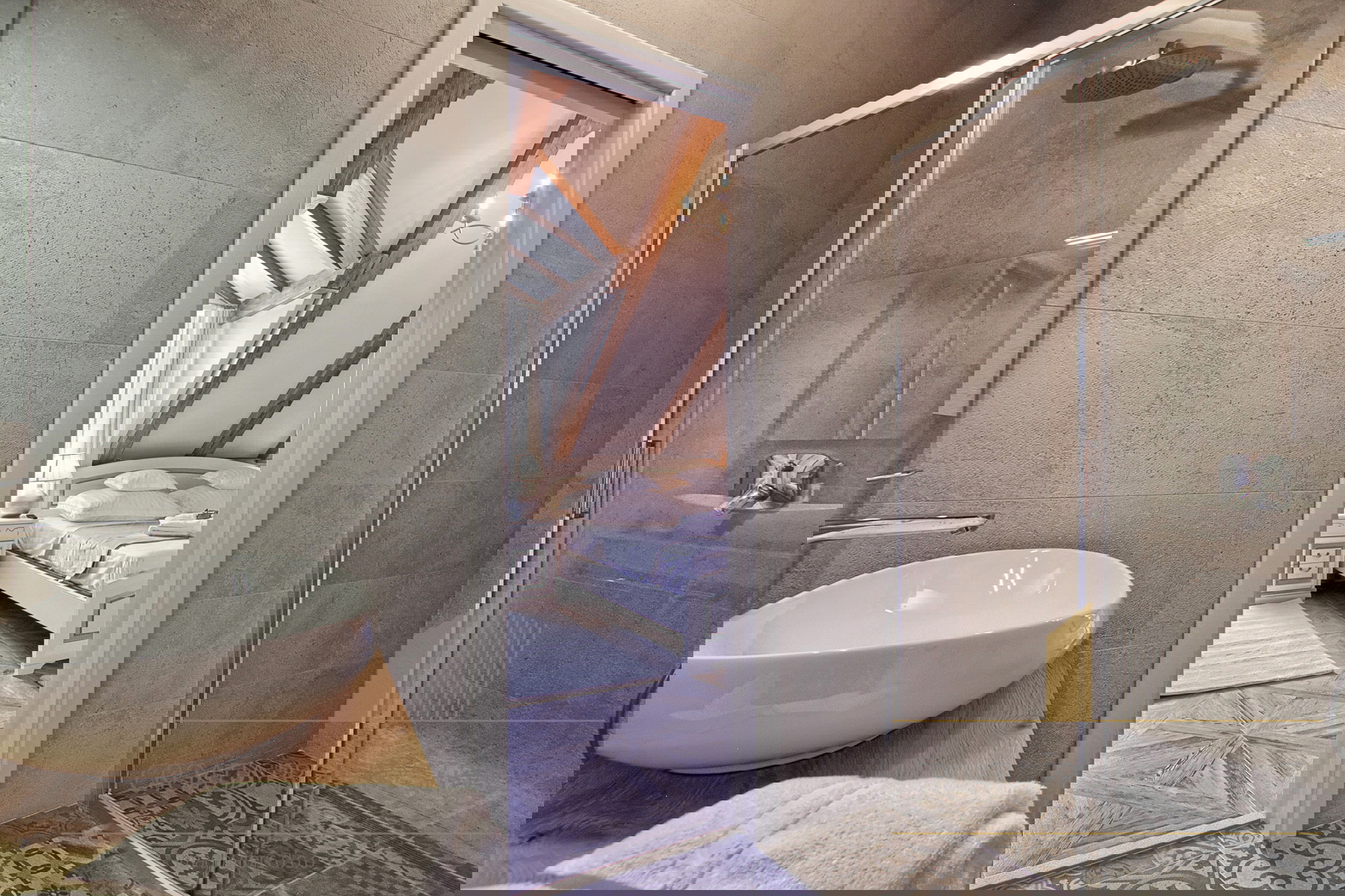 The villa is located in a quiet area, a 5-minute walk to the nearest beach, while numerous restaurants, bars, and shops are situated along the famous seaside promenade, ideal for enjoying long walks at sunset.