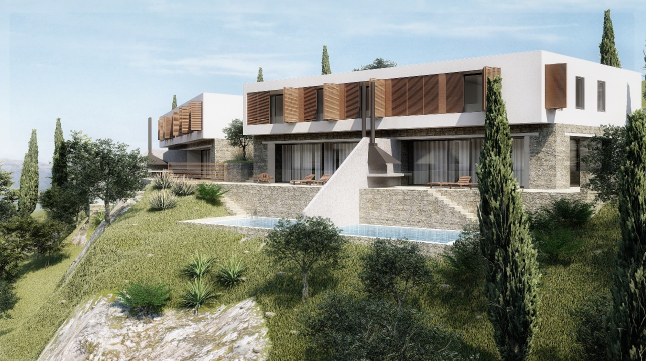 The villas are located on a gentle slope, arranged in a cascade and facing the crystal clear sea, offering peace and privacy and a beautiful open view.