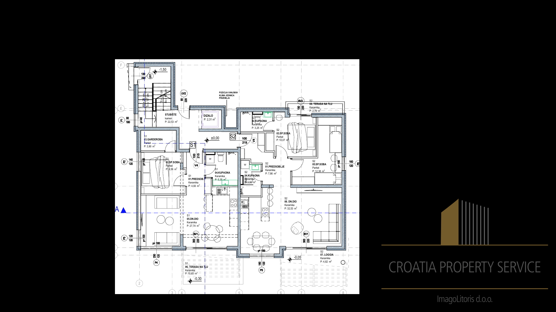 Available is a luxury apartment S4, located on the first floor of the new building, with a living area of 78.19 m2. This functional apartment consists of an entrance hall, spacious living room, kitchen, dining area with access to the loggia, two bedrooms, and two bathrooms. The apartment also includes one garage parking space.
