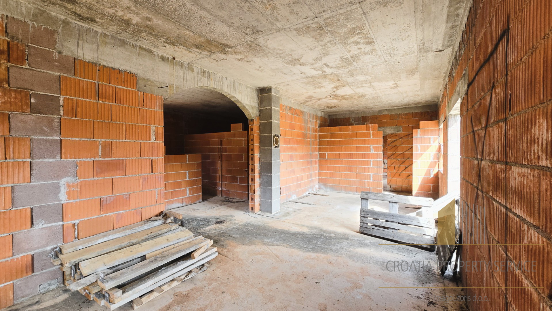 An unfinished ground-floor house with an area of 145 m2 is for sale in a quiet location in Rogač on the island of Šolta, only 150 meters from the sea.