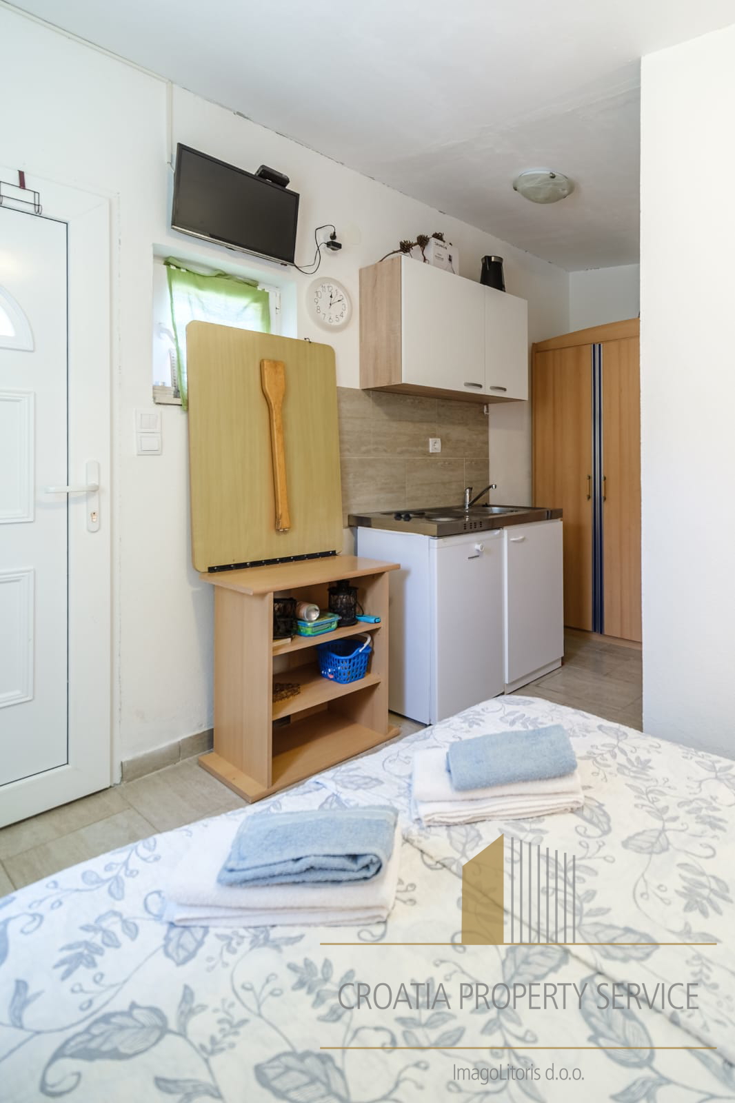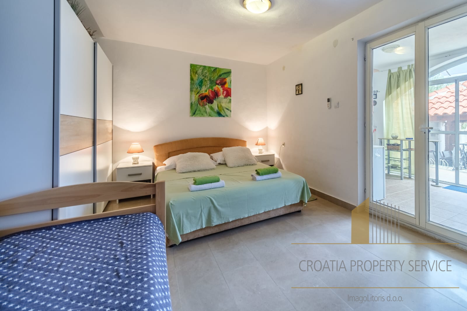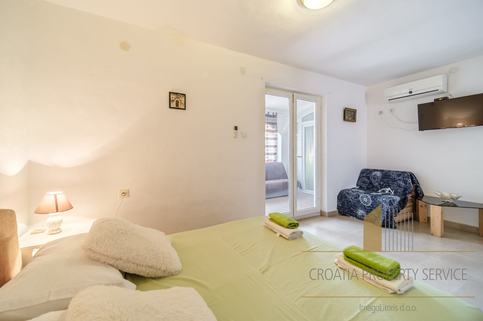 It is only a two-minute walk from the crystal-clear beach.