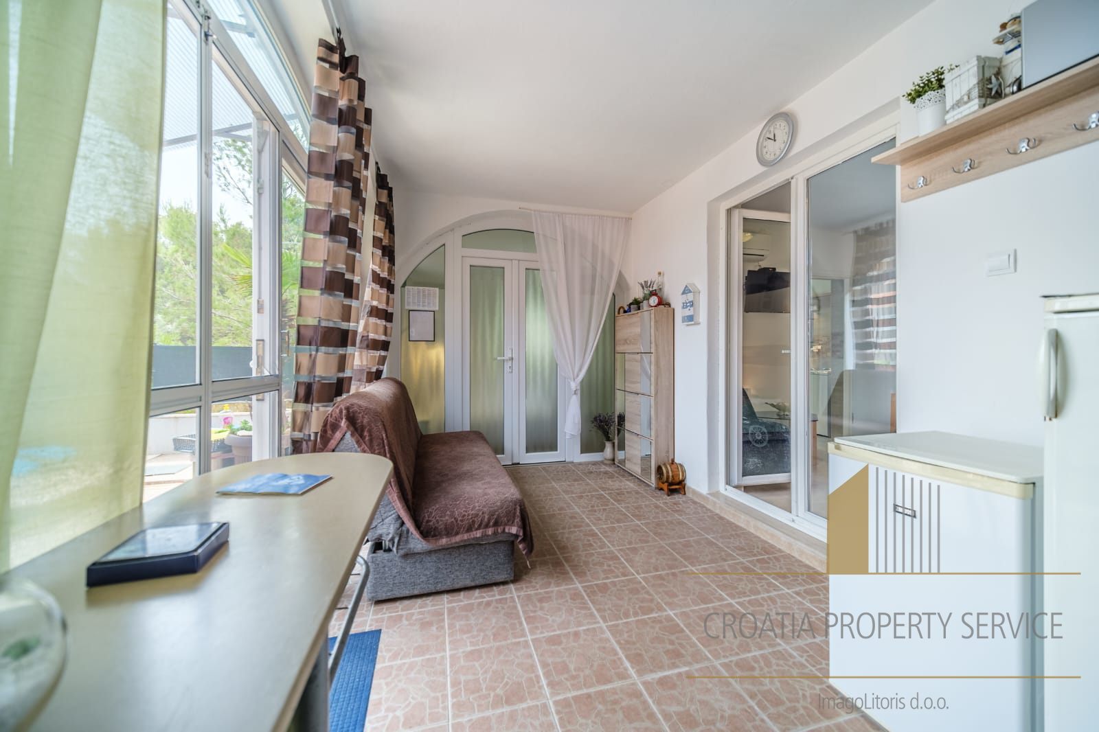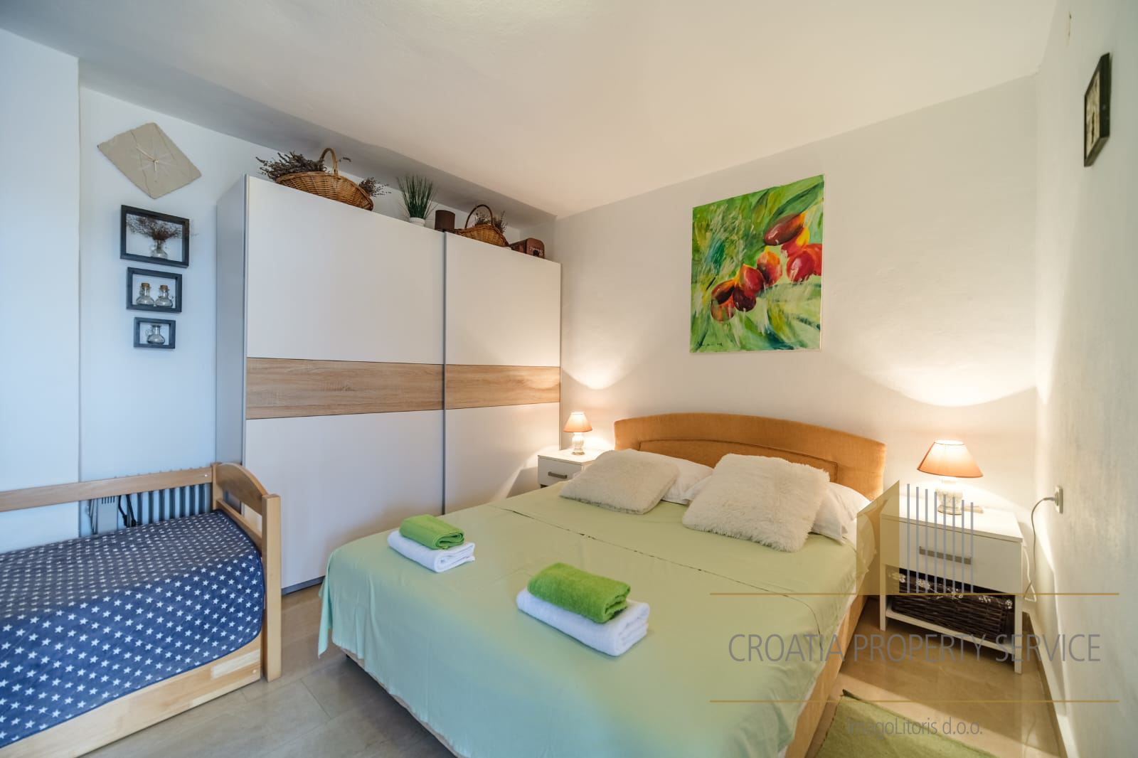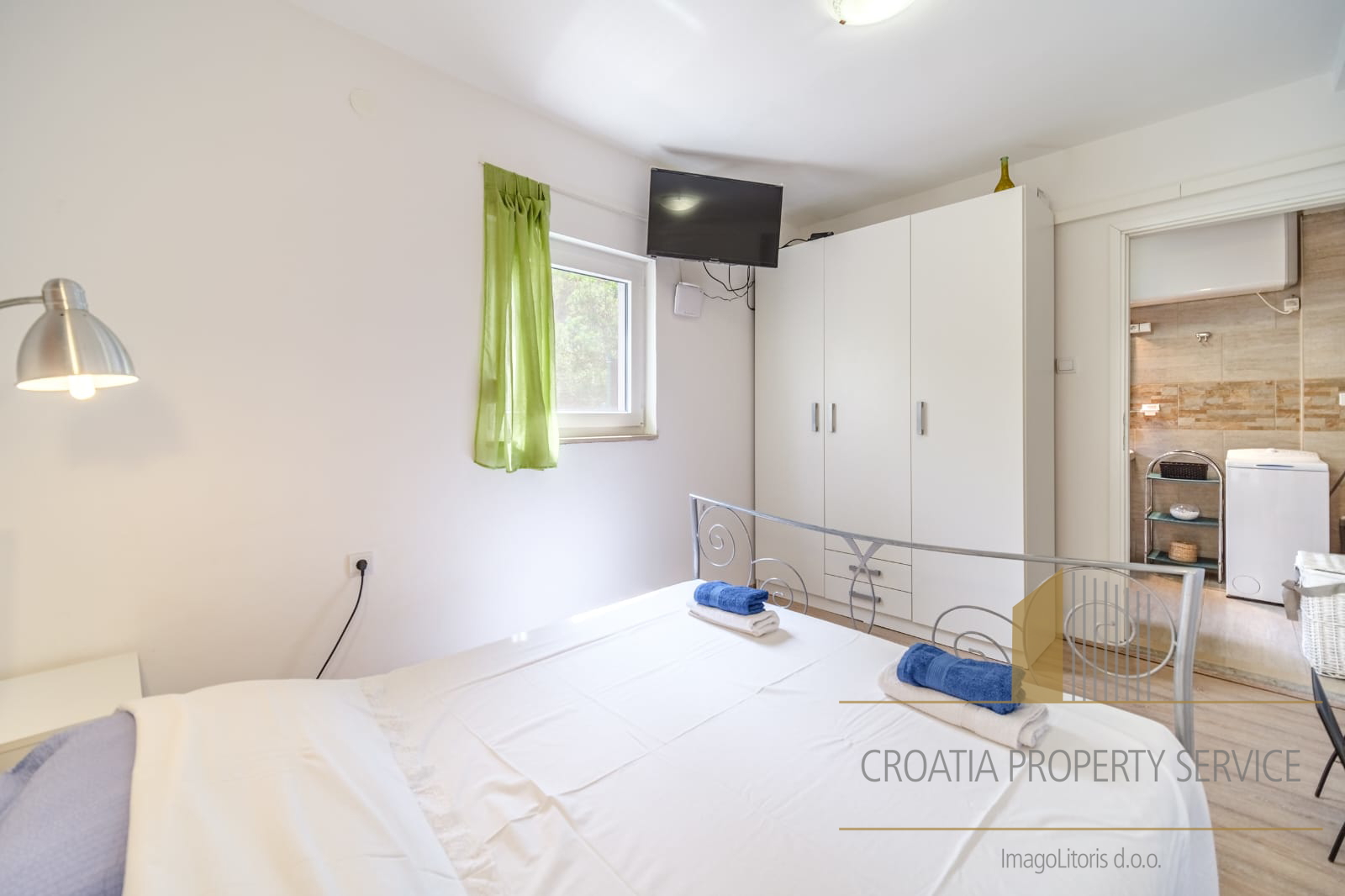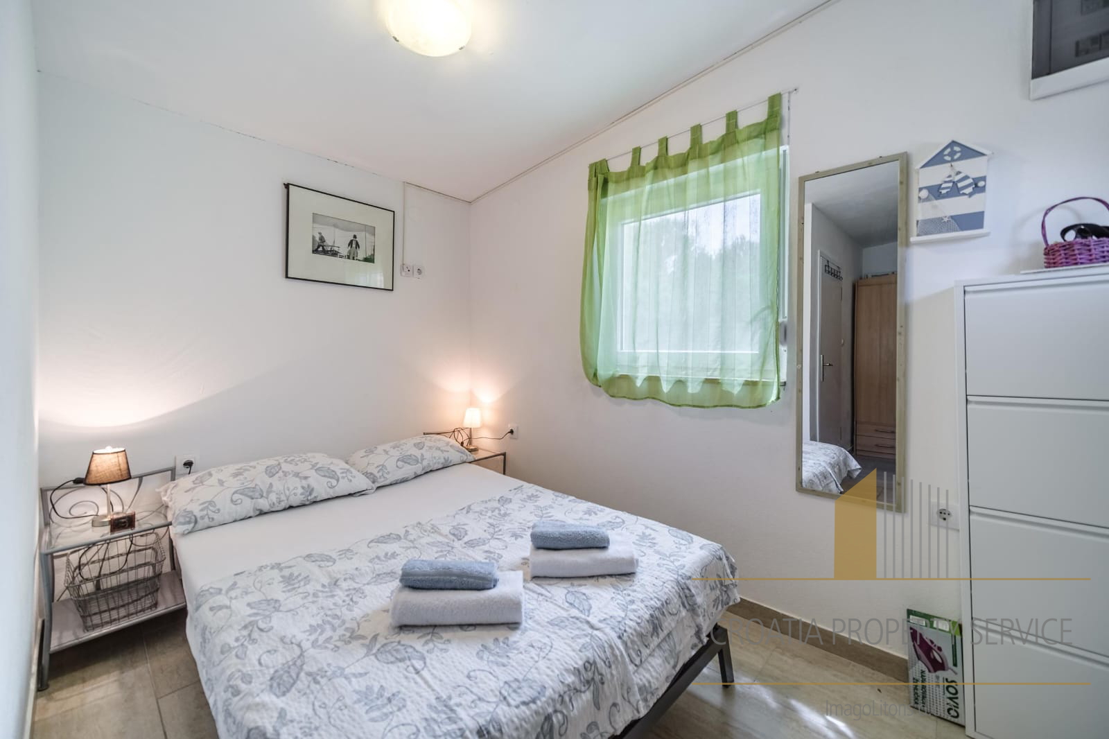 It is only a two-minute walk from the crystal-clear beach.