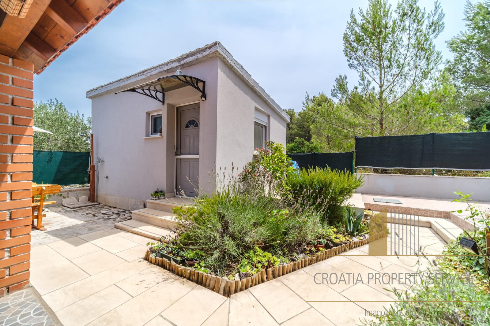 In the yard, there is an additional small house arranged as a studio apartment with its own kitchen and bathroom — a perfect solution for guests or tourist rental.