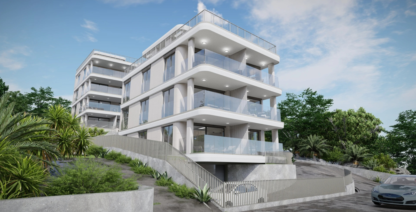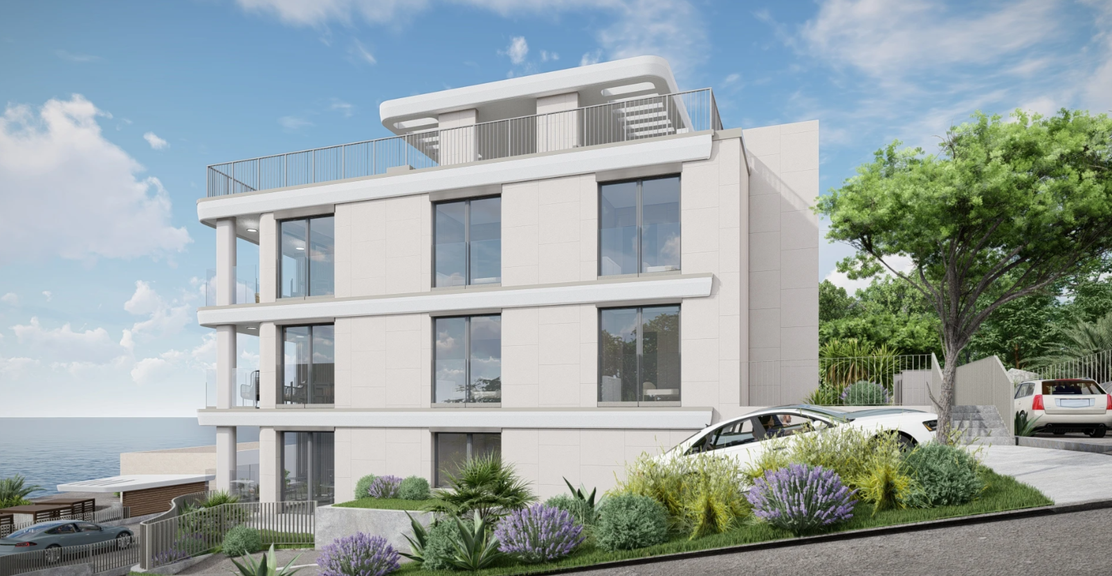 The apartments in building A feature unobstructed sea views, while the apartments in building B offer partial sea views.