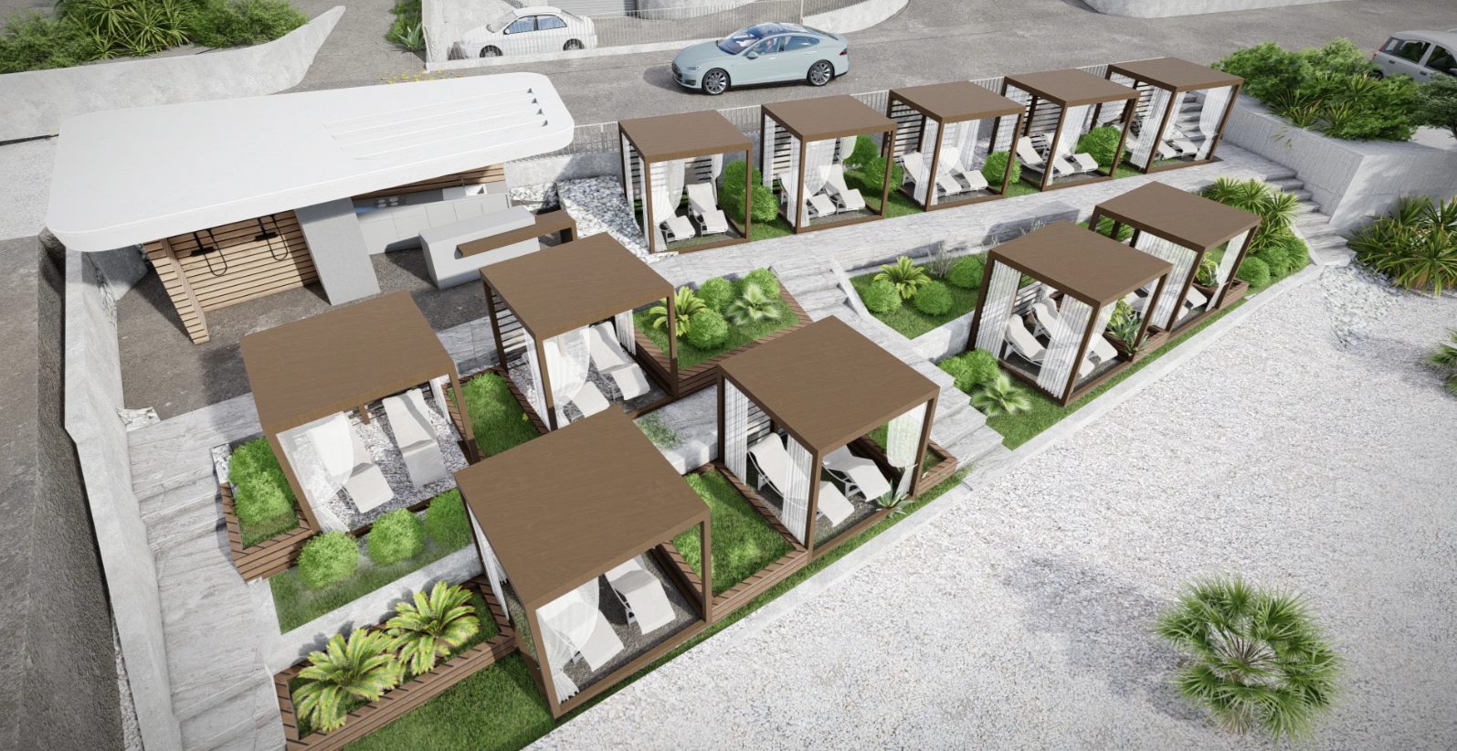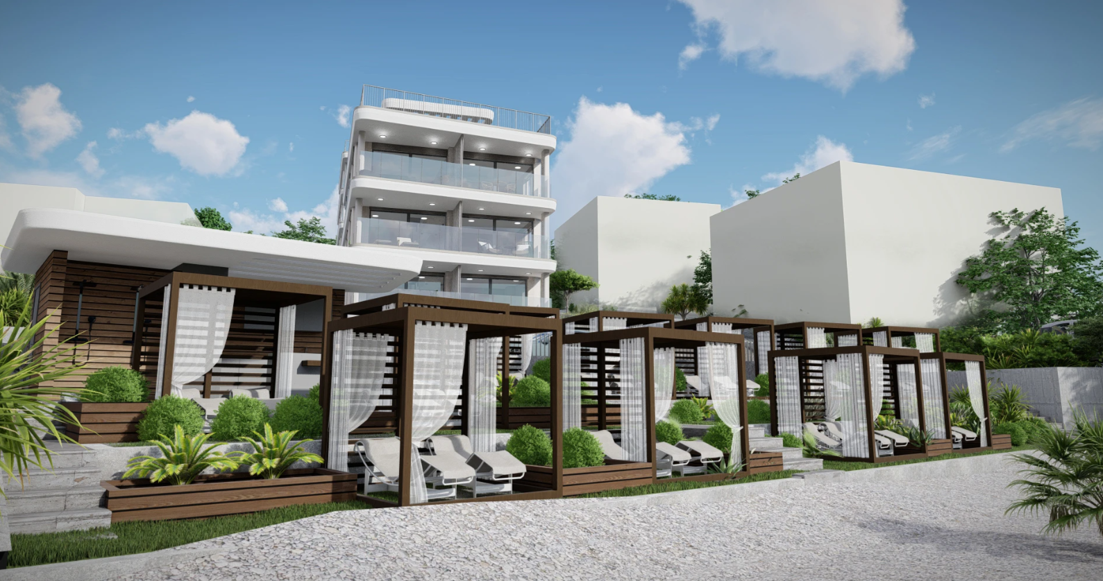 - Share in a private sunbathing area by the beach: 20,000 EUR (includes exclusive use of one private cabin)