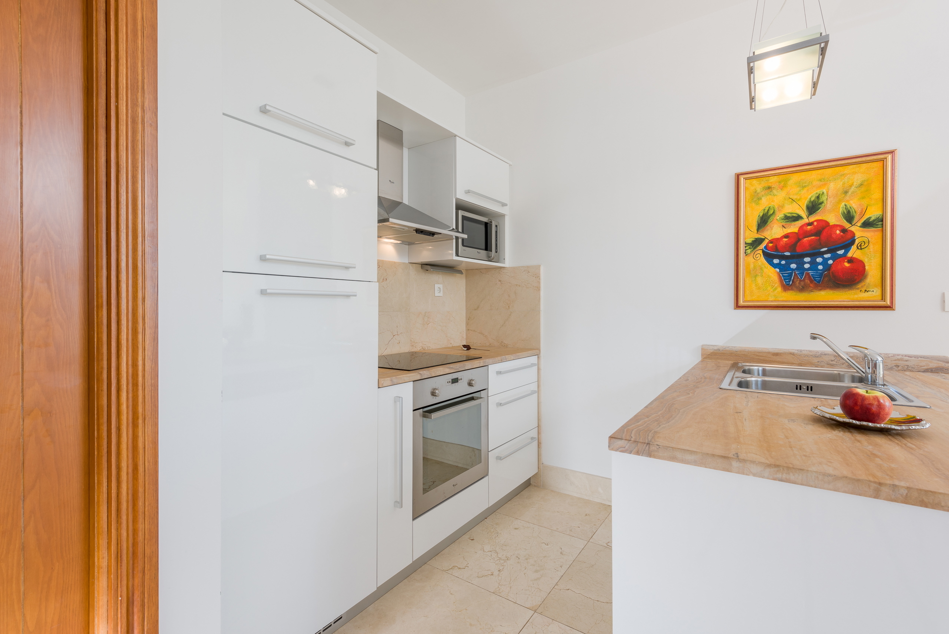 This modernly furnished apartment is situated on the first floor of a house with three apartments, in a block with one more house, and covers 83.45 m2.