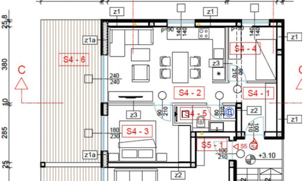 S5, penthouse, 2nd floor: 177.66 m2, 3 bedrooms, two terraces, roof terrace. Price: €1,590,000.