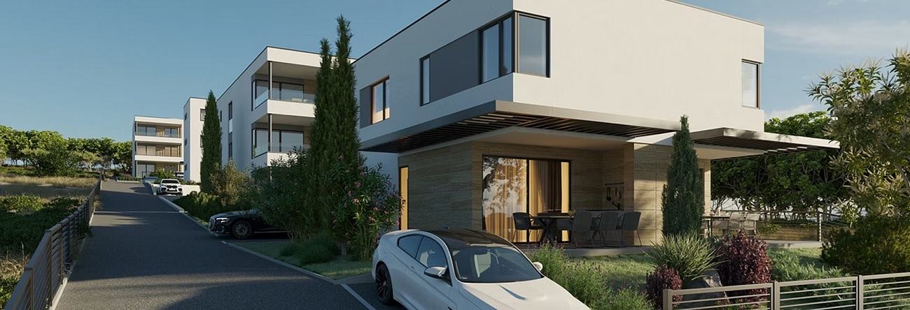 The complex consists of four separate buildings with a total of 17 exclusive residential units, including modernly designed apartments and two luxury semi-detached villas.