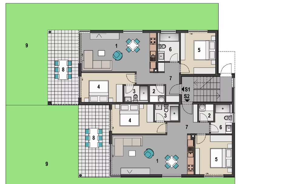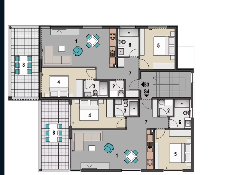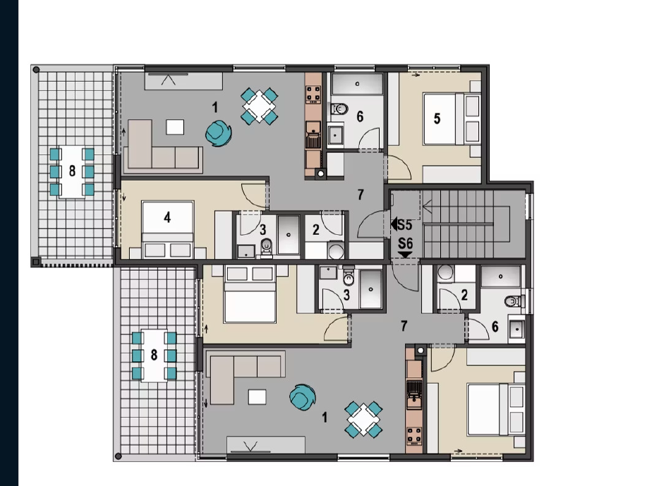 Apartment S5 in Building 1 represents an exclusive penthouse with an area of 76.25 m2, designed with special attention to detail and functionality. Located on the top floor, this apartment offers a harmonious blend of elegant comfort and Mediterranean ambiance.