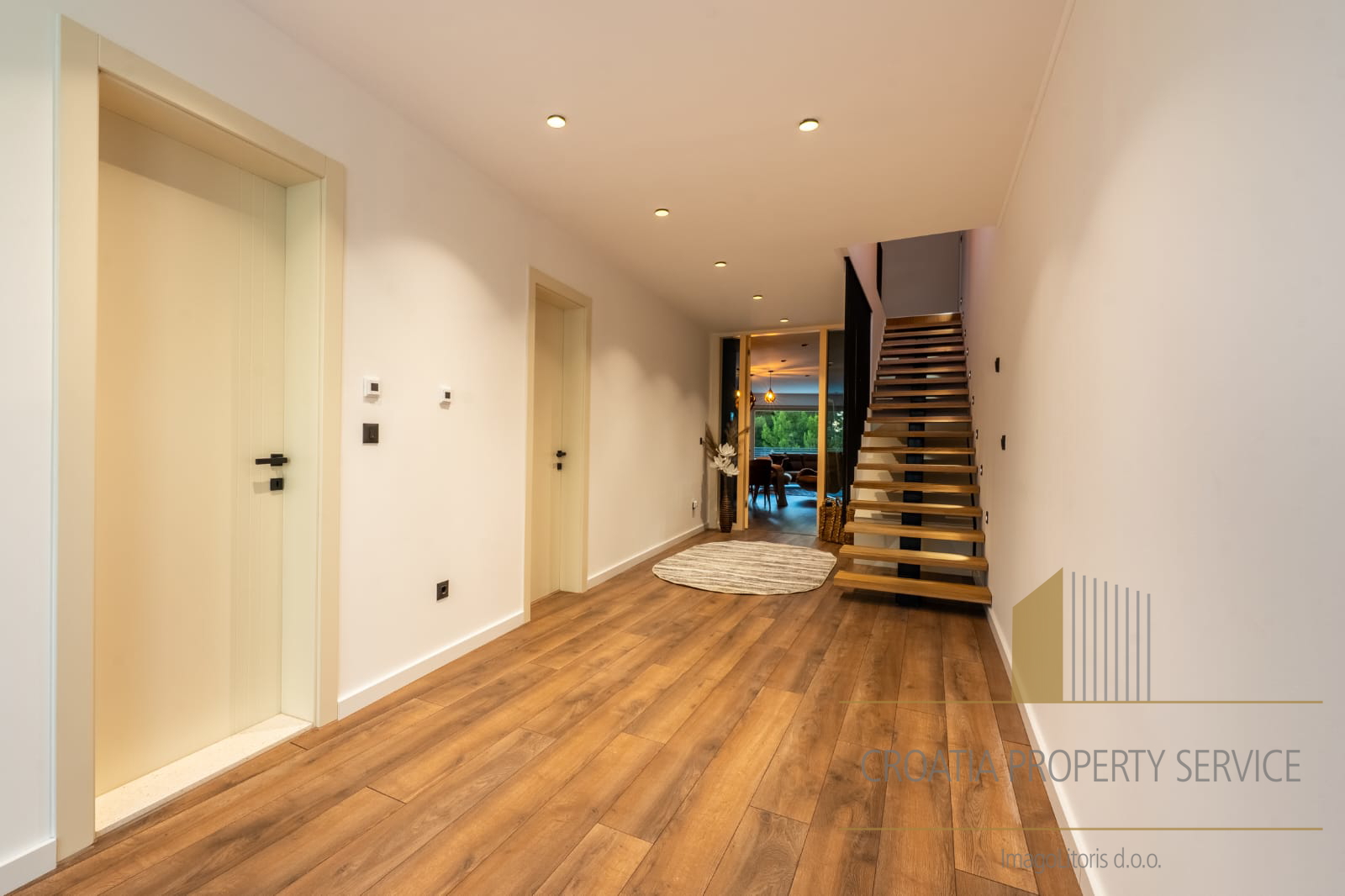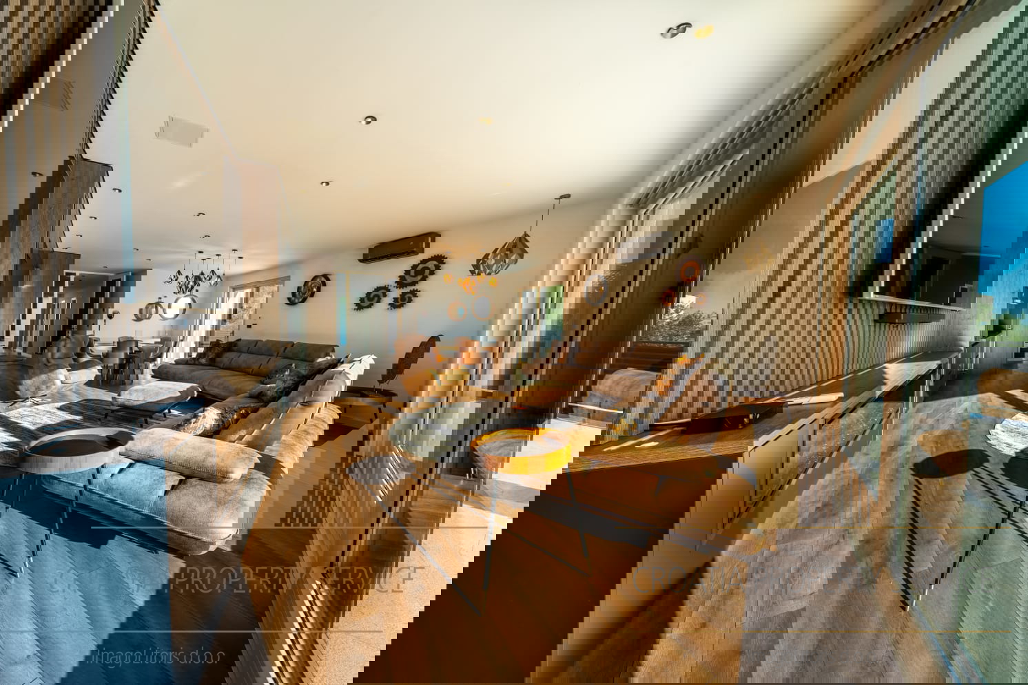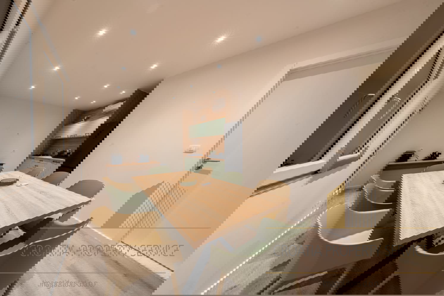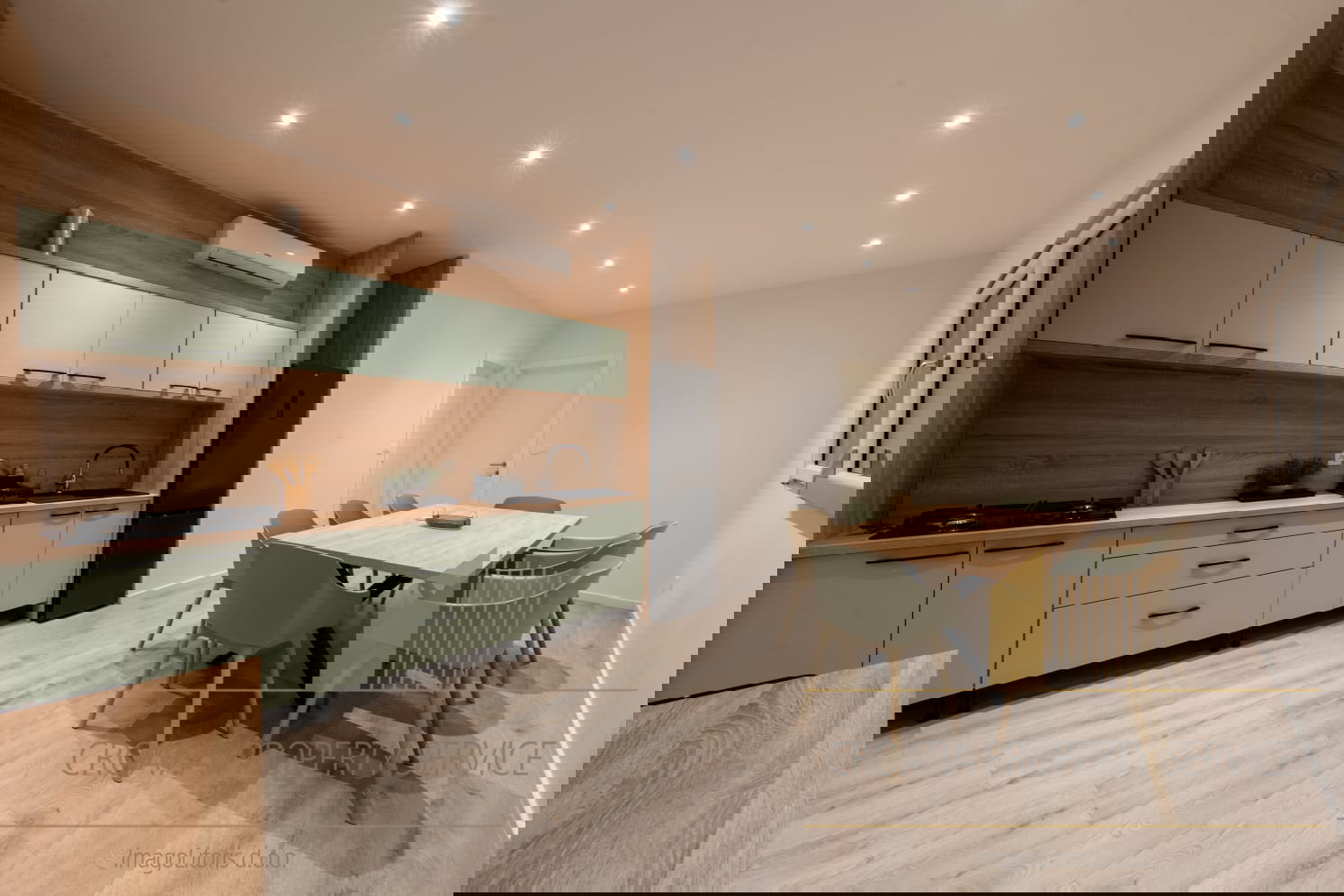 Prostrani životni prostori odišu svjetlošću i prozračnošću, s dizajnerskim interijerom otvorenog koncepta i visokim stropovima koji naglašavaju osjećaj luksuza i slobode.