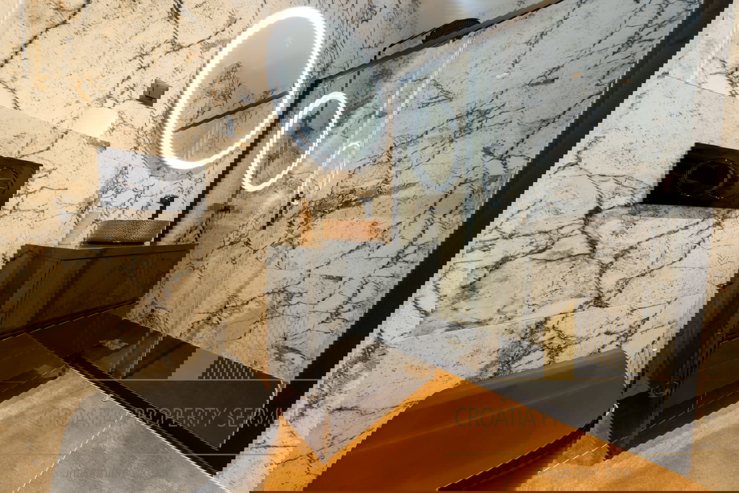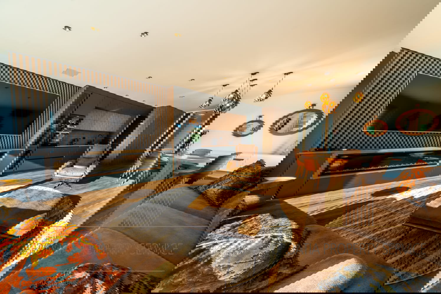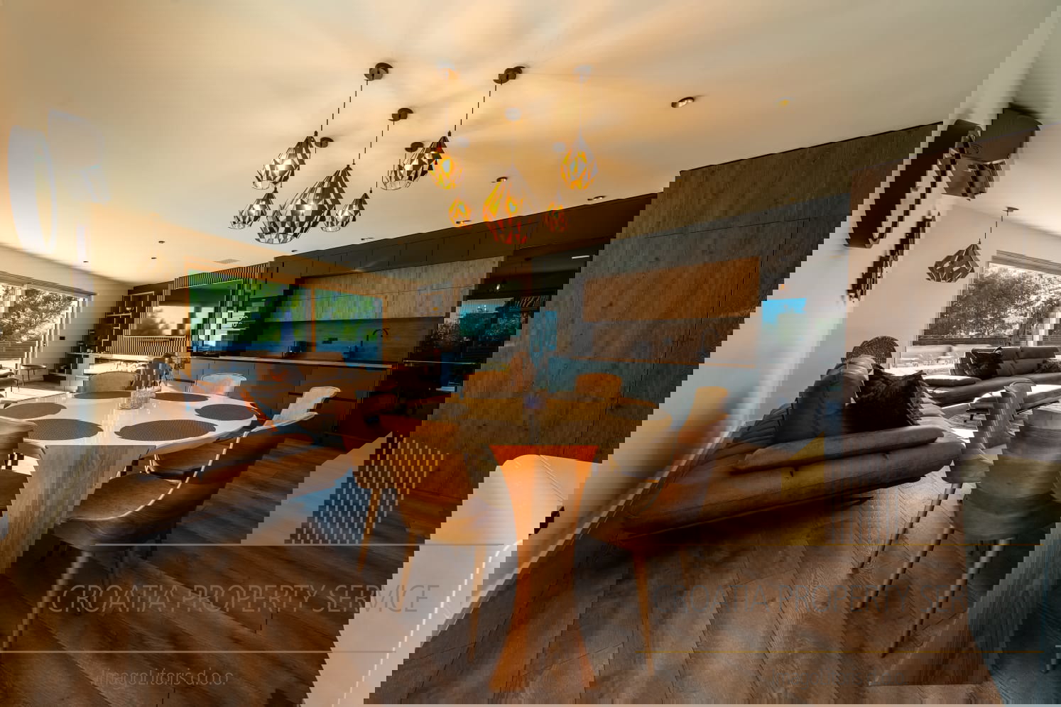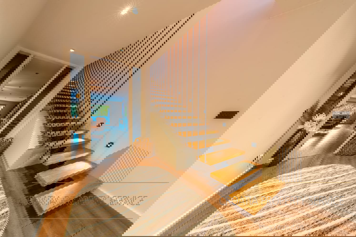 Prostrani životni prostori odišu svjetlošću i prozračnošću, s dizajnerskim interijerom otvorenog koncepta i visokim stropovima koji naglašavaju osjećaj luksuza i slobode.