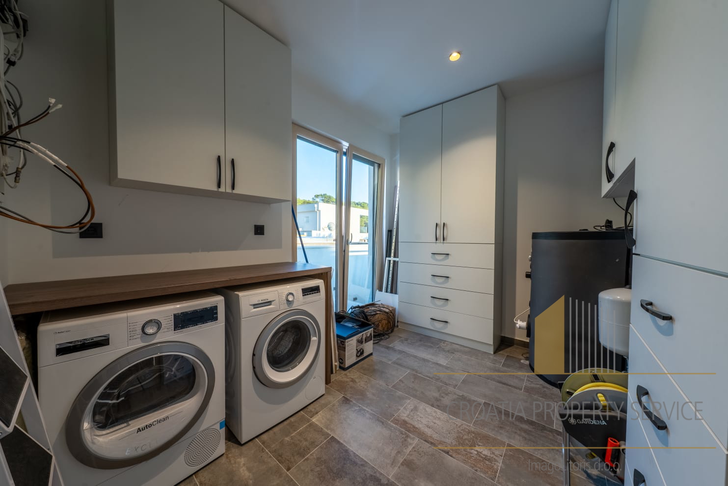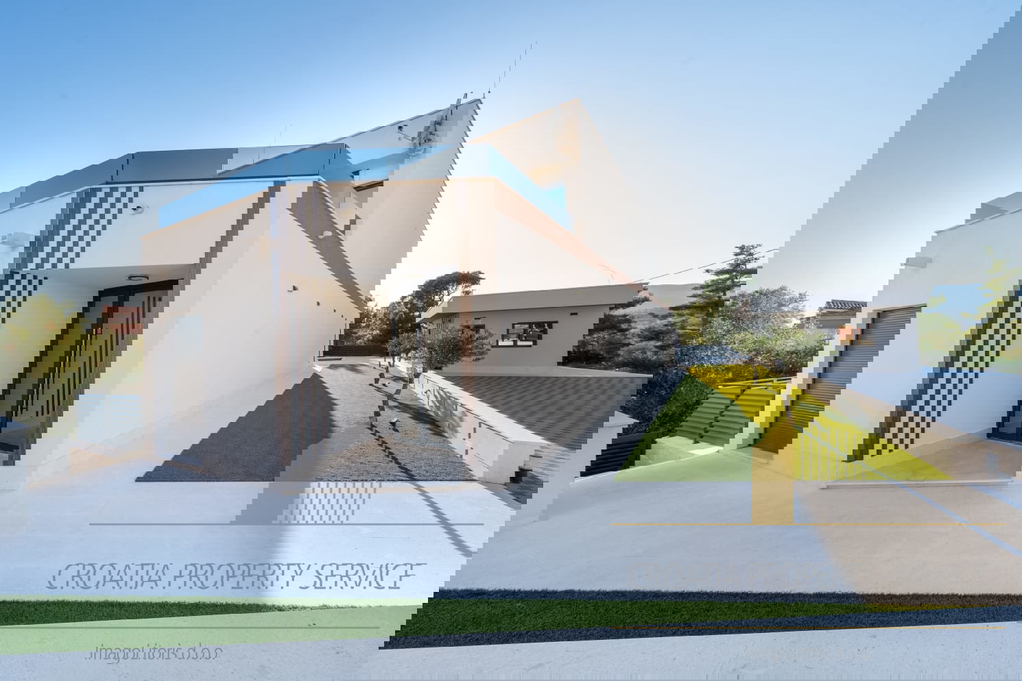 Ispred vile smještene su dvije garaže, dok se dodatni parking za četiri vozila nalazi iza kuće.
