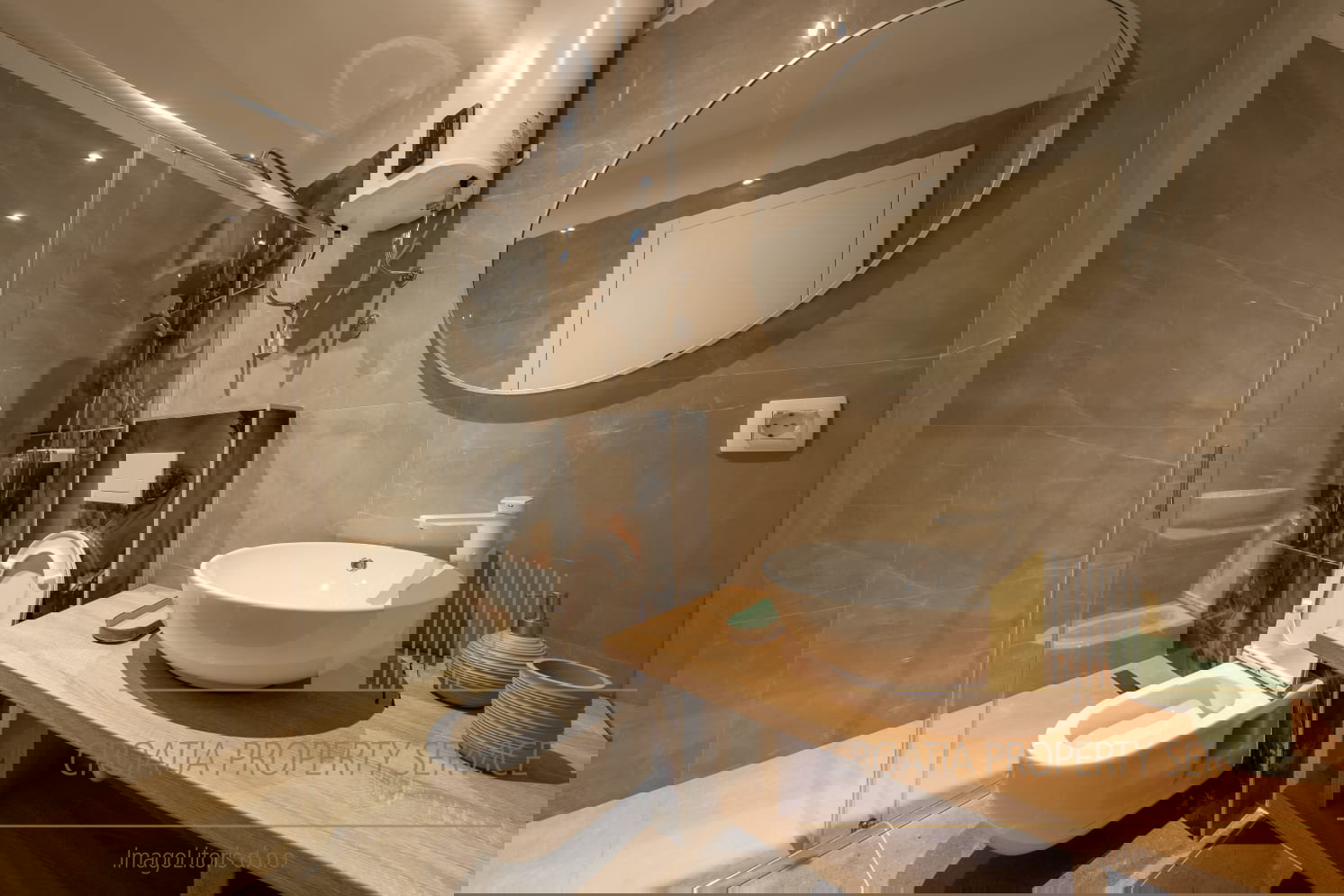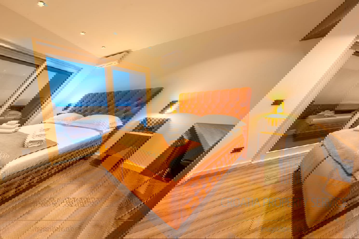 Unutrašnjost čine: tri prostrane spavaće sobe, svaka s vlastitom kupaonicom i walk-in ormarom, pet moderno uređenih kupaonica, dvije potpuno opremljene kuhinje s vrhunskim aparatima, elegantni dnevni boravak, idealan za druženja i opuštanje.