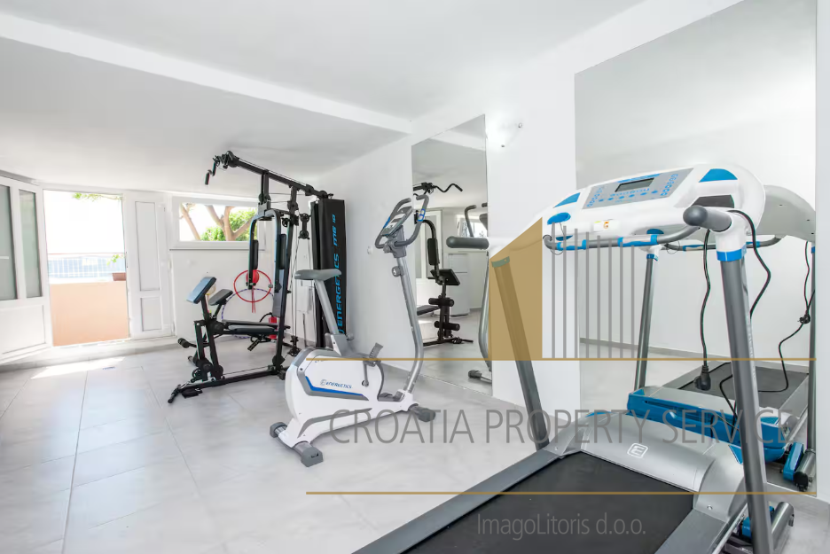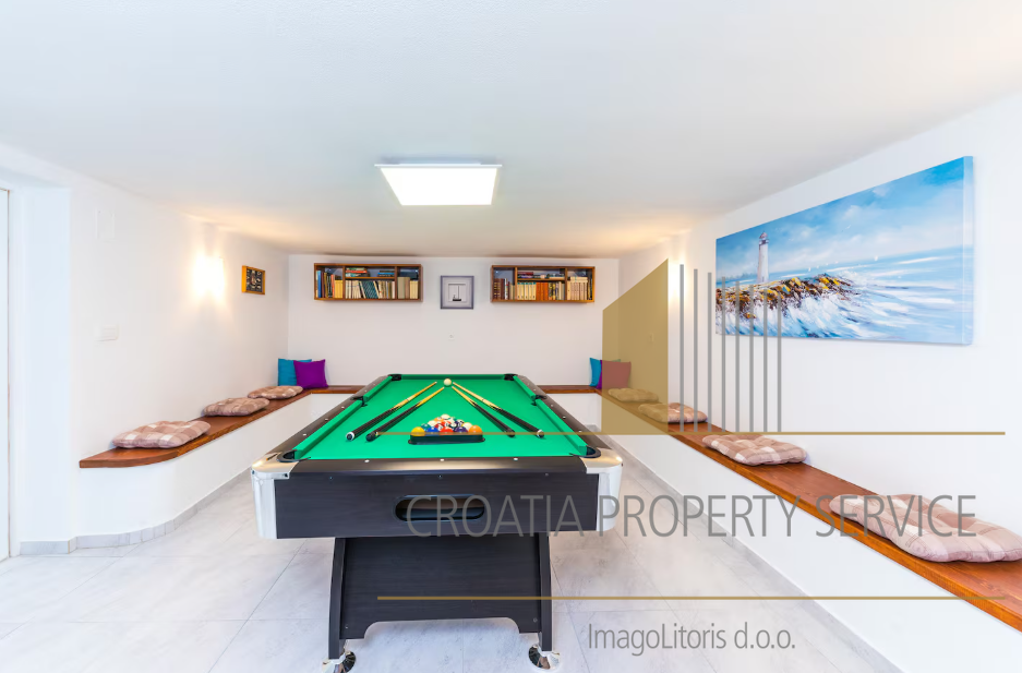 U suterenu se nalazi potpuno uređen prostor za rekreaciju i zabavu, uključujući teretanu, biljar, stolni tenis i stolni nogomet.