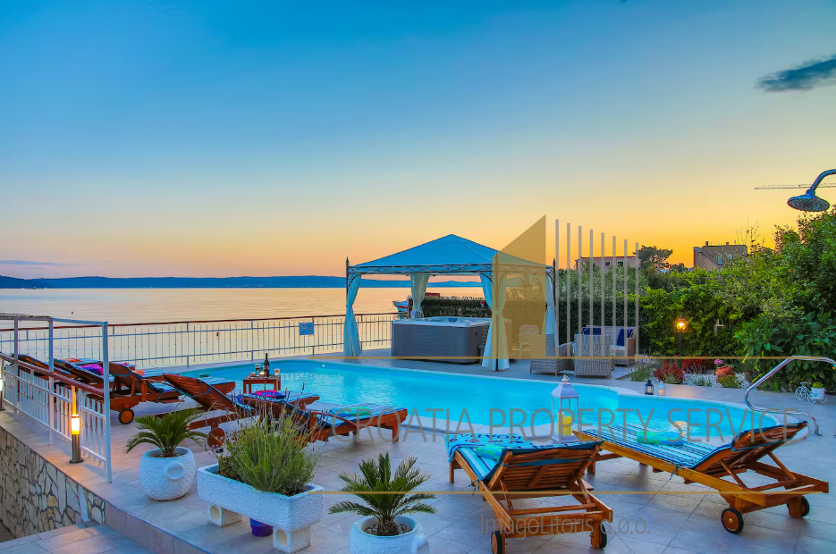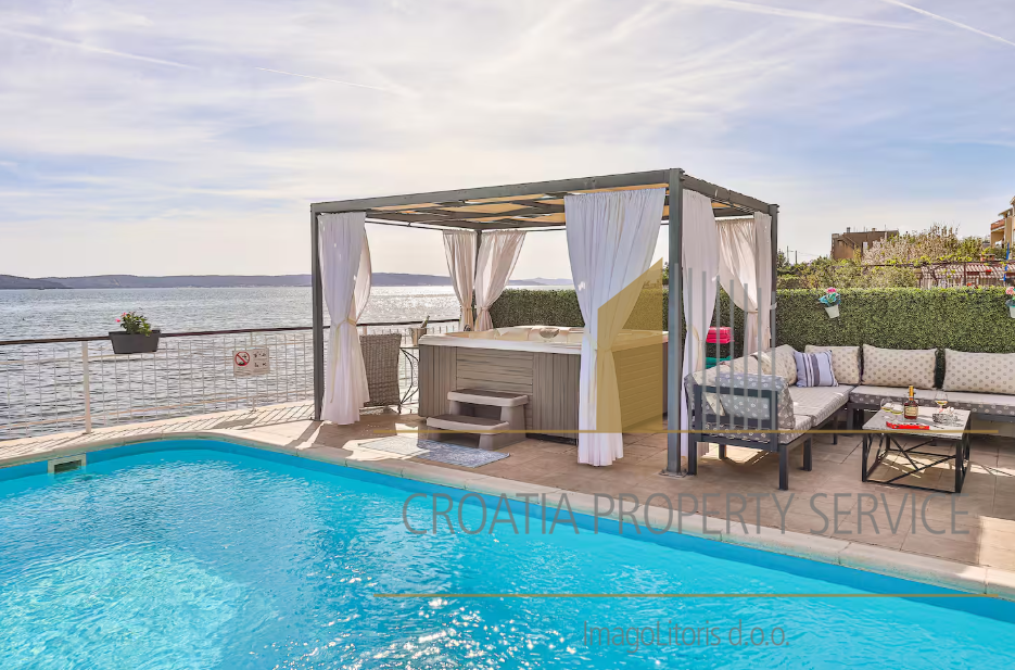 Na prodaju je luksuzna vila smještena u prvom redu do mora, u mirnom dijelu Kaštel Sućurca, s otvorenim pogledom na Kaštelanski zaljev i grad Split.