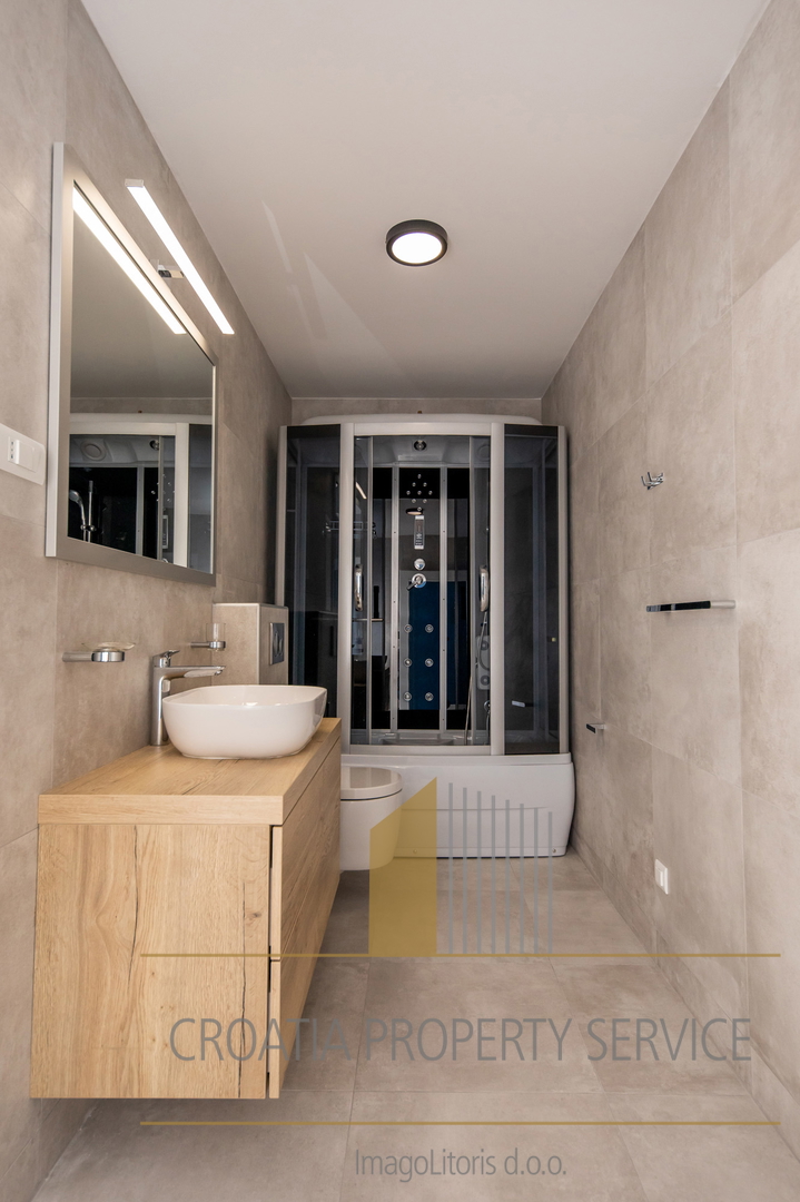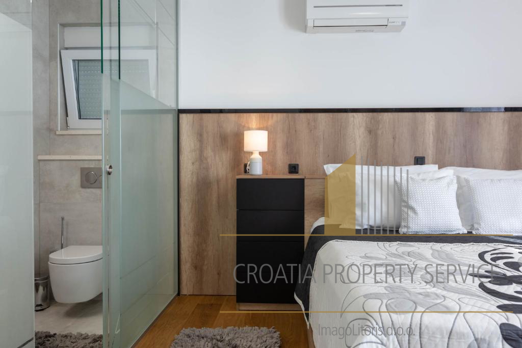 Nekretnina se prodaje potpuno namještena i opremljena, spremna za useljenje ili luksuzni turistički najam bez dodatnih ulaganja.