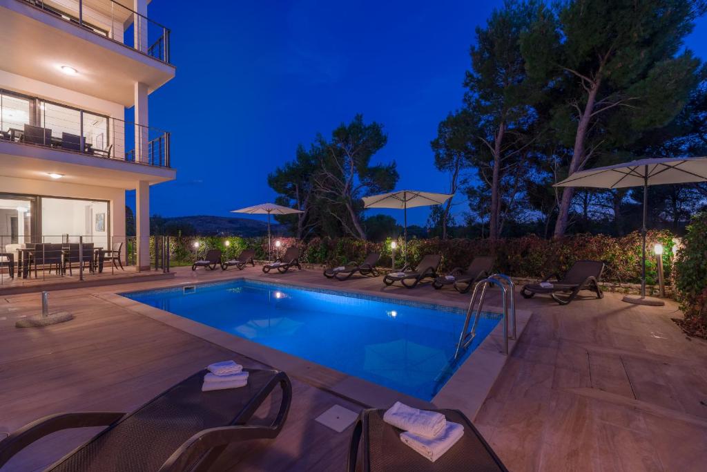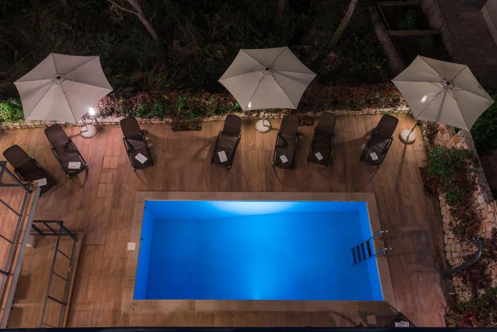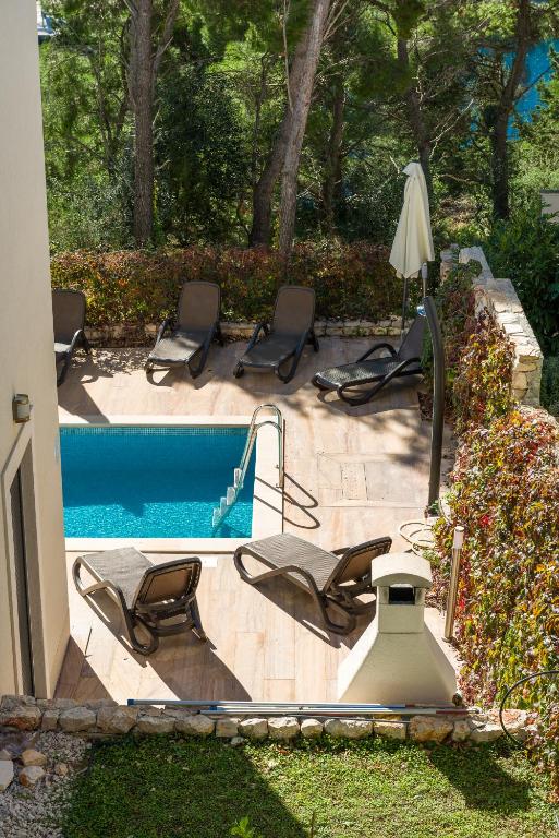 Na raspolaganju je pažljivo uređena okućnica s mediteranskim biljem i zajednički bazen sa sunčalištem, koji se dijeli s ostalim apartmanima u bloku.