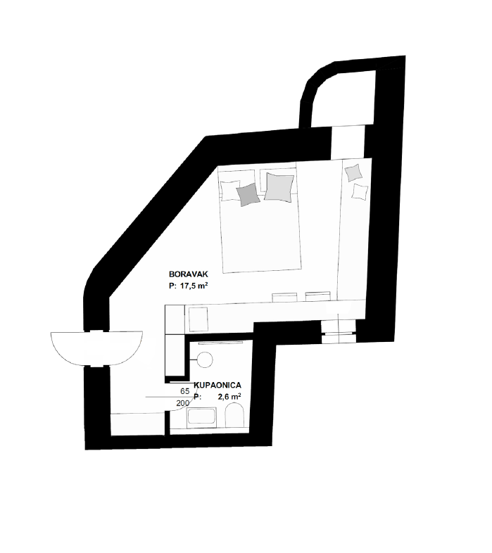Apartman AP4 smješten je na prvom katu i ima ukupnu stambenu površinu od 18.6 m2.