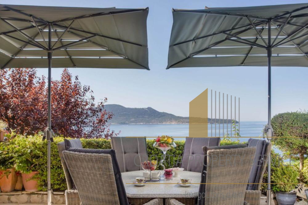 Splendida villa in pietra con piscina su tre piani, situata in prima fila sul mare, con una splendida vista sul mare da tutte le terrazze e da tutte le stanze.