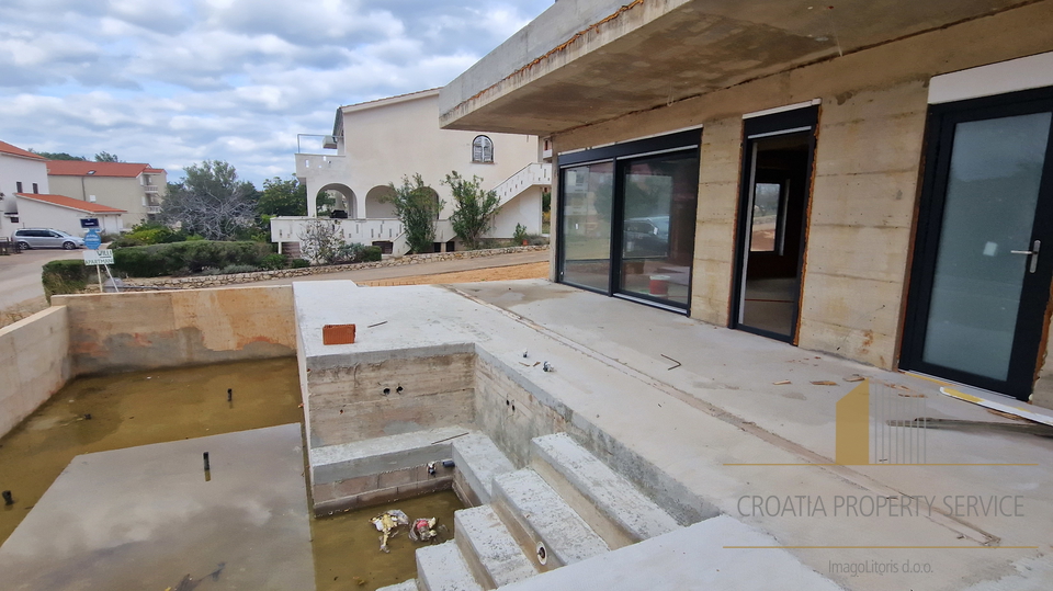 Moderna nuova costruzione in una splendida posizione a 40 m dal mare e dalla spiaggia a Novalja sull'isola di Pag.