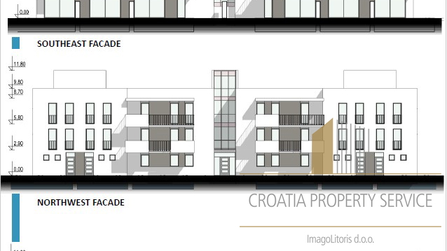 Moderna palazzina residenziale-commerciale in costruzione in ottima posizione a 50 m dal mare e dalla spiaggia a Privlaka.
