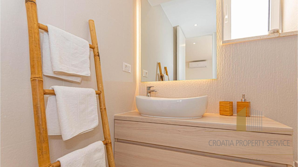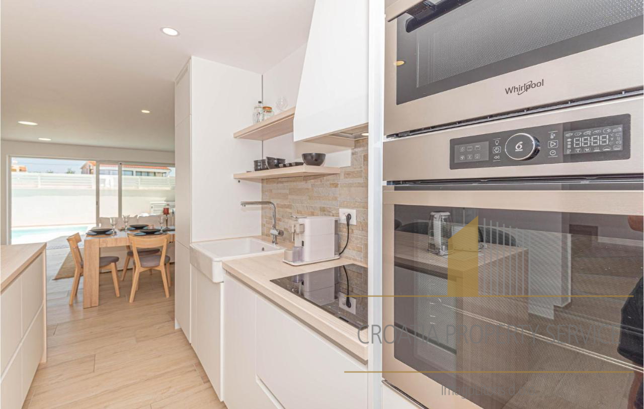Villa di lusso con piscina privata. Villa di nuova costruzione, completamente attrezzata, per ospiti che cercano il massimo comfort. L’elegante interno comprende un ampio piano terra con cucina, sala da pranzo e soggiorno con accesso alla terrazza e alla piscina con solarium. Il piano terra dispone anche di un bagno per gli ospiti e di una cabina armadio. Al piano superiore ci sono tre camere da letto e due bagni, inclusa la camera matrimoniale con bagno privato e cabina armadio.