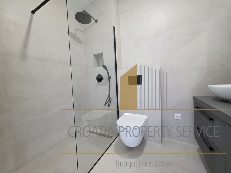 L'intero spazio è arredato con materiali di alta qualità e dotazioni moderne – climatizzazione in tutte le stanze, riscaldamento a pavimento nei bagni, ceramiche di prima scelta, porta d'ingresso antieffrazione e porte interne di un rinomato produttore.