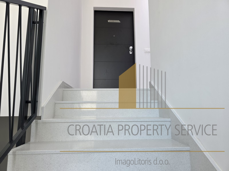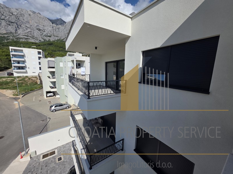 In vendita un moderno attico trilocale situato all'ultimo piano di una nuova costruzione con ascensore, in una posizione eccellente in una zona tranquilla di Makarska.