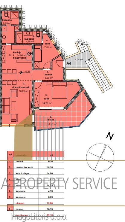 Dalla zona giorno e dalla terrazza si gode di una vista aperta e incantevole sul mare e sulle isole, inoltre l’appartamento dispone di un posto auto privato sul lato nord dell’edificio.