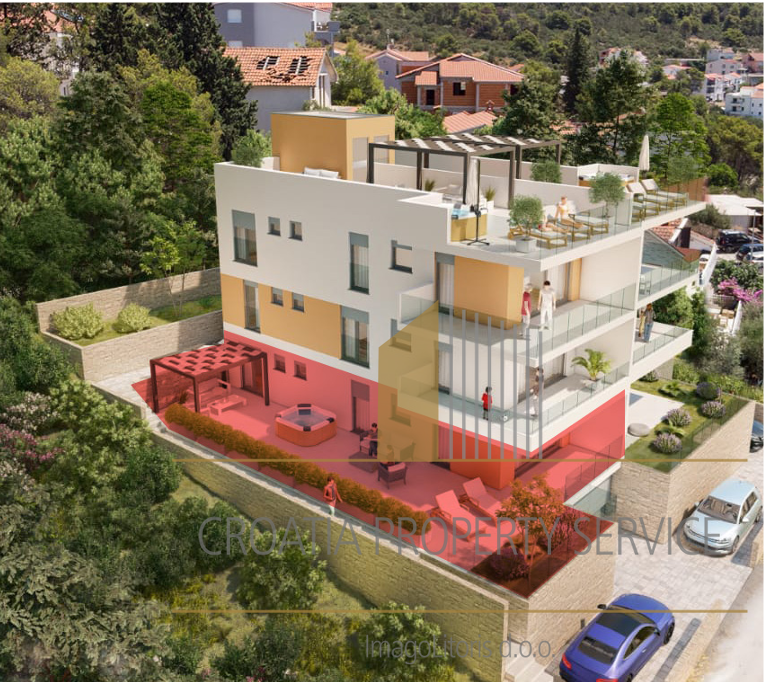 Appartamento di lusso con giardino in una nuova costruzione a 150 m dal mare - isola di Čiovo!