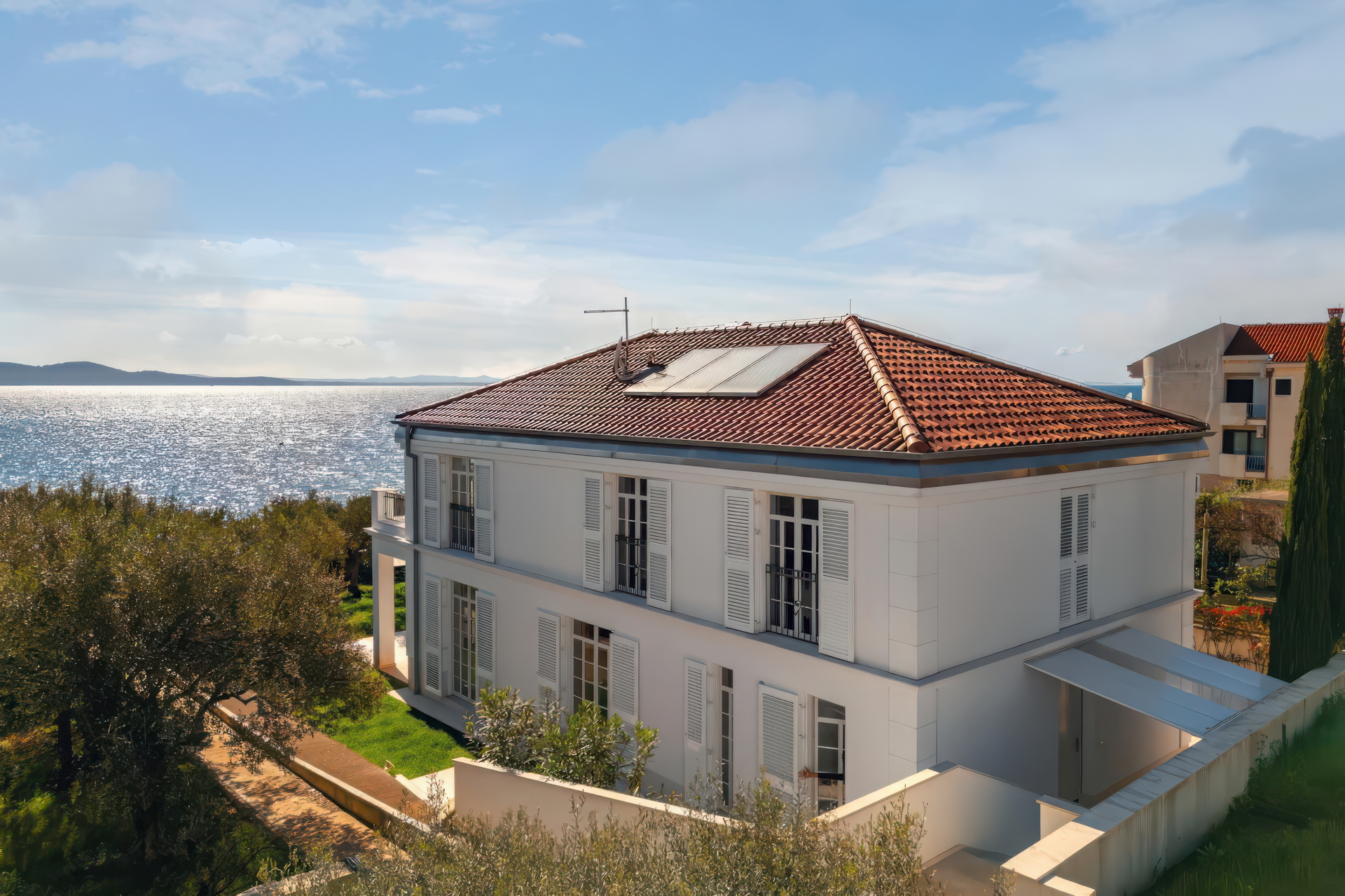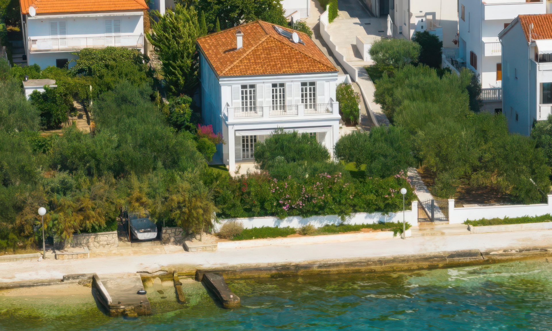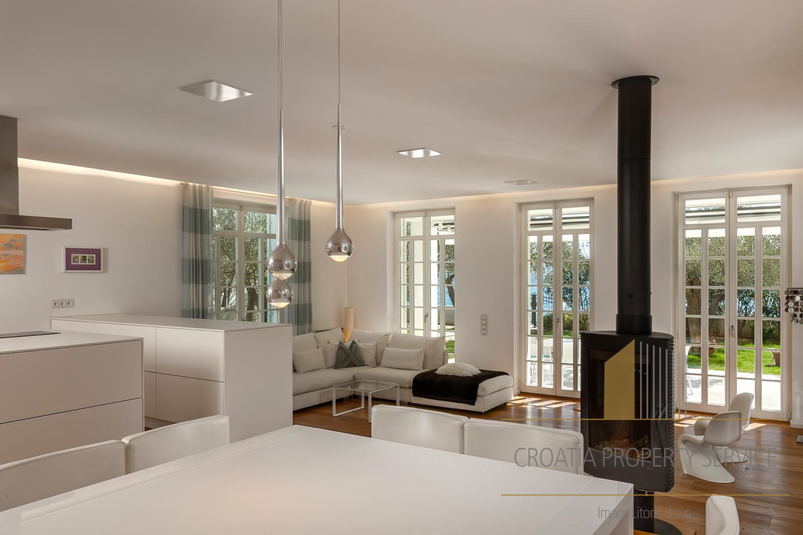 На одной из самых престижных локаций Адриатического побережья, в первой линии у моря и окружённая тишиной и приватностью, расположилась эта исключительная вилла, которая идеально сочетает вечную элегантность с современным комфортом.
