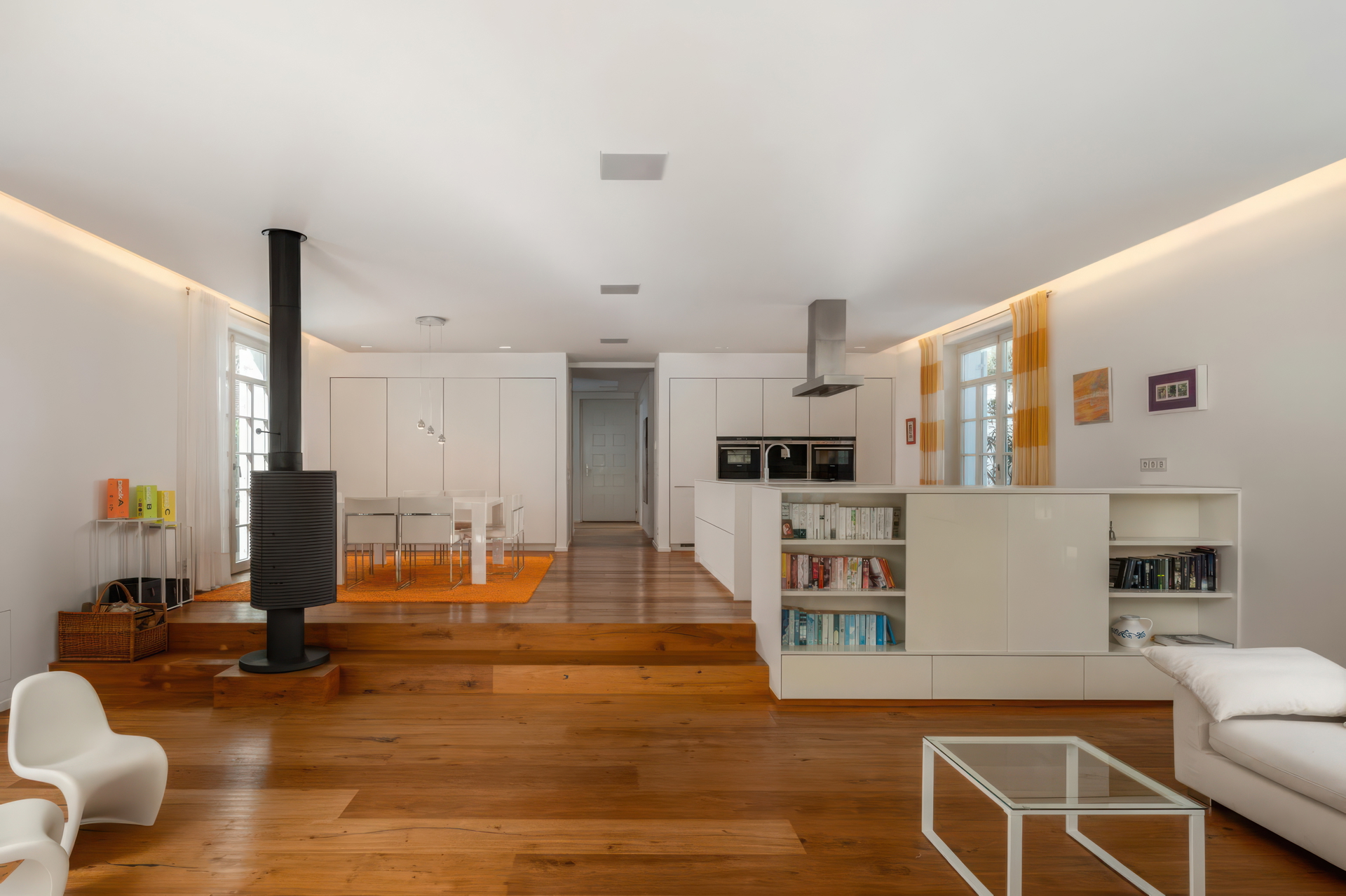 Энергоэффективность достигнута благодаря открытой фасаде с интеллектуальной климатической системой и солнечным панелям на крыше, а автоматический полив облегчает уход за безупречно ухоженным садом.